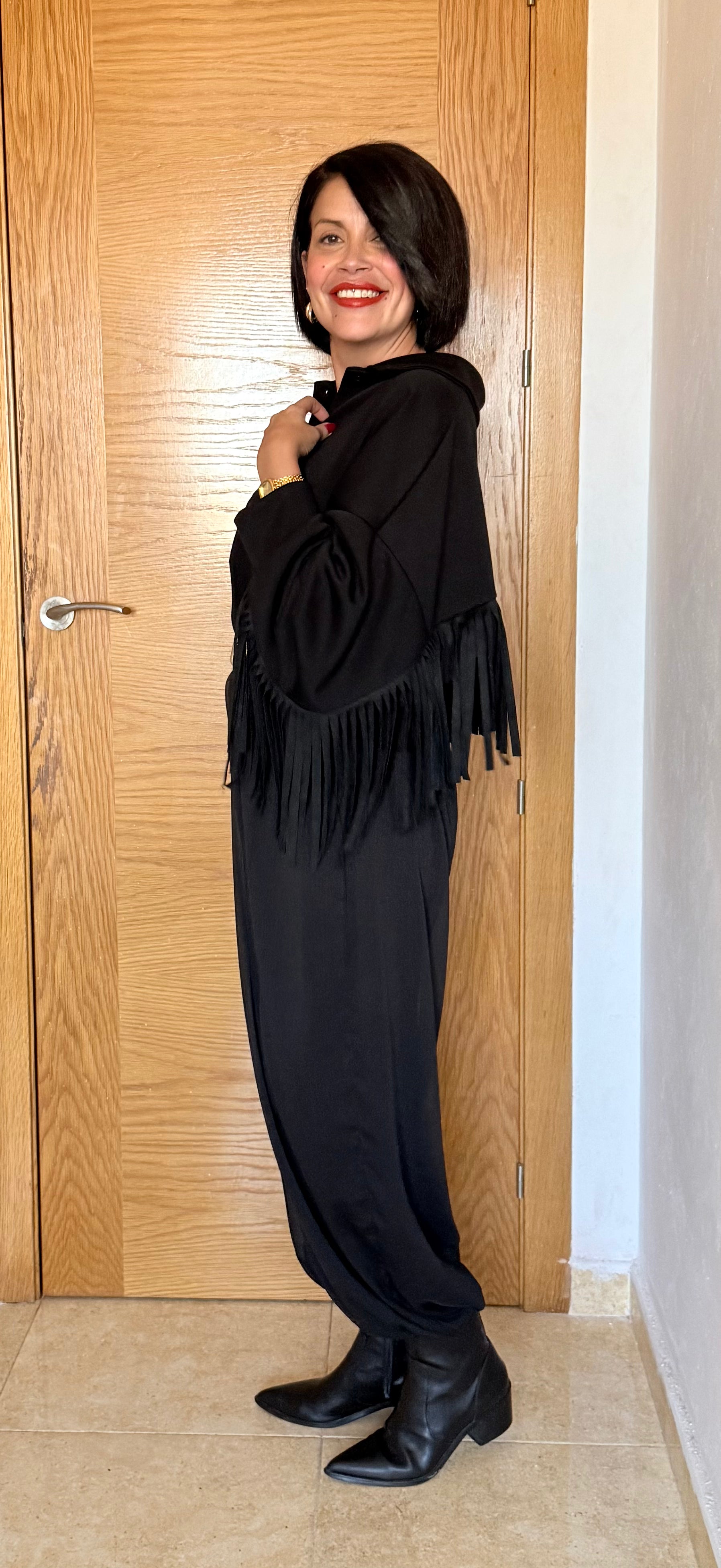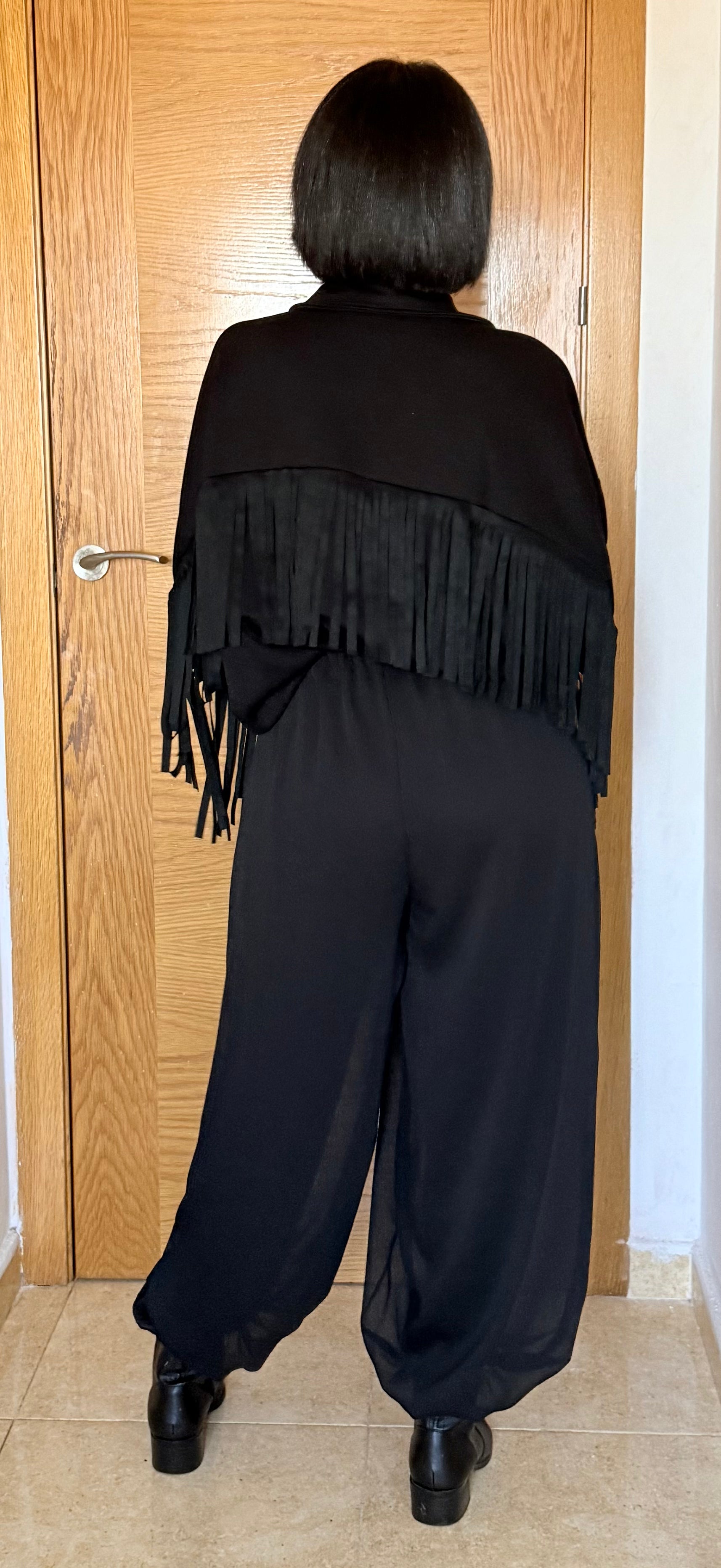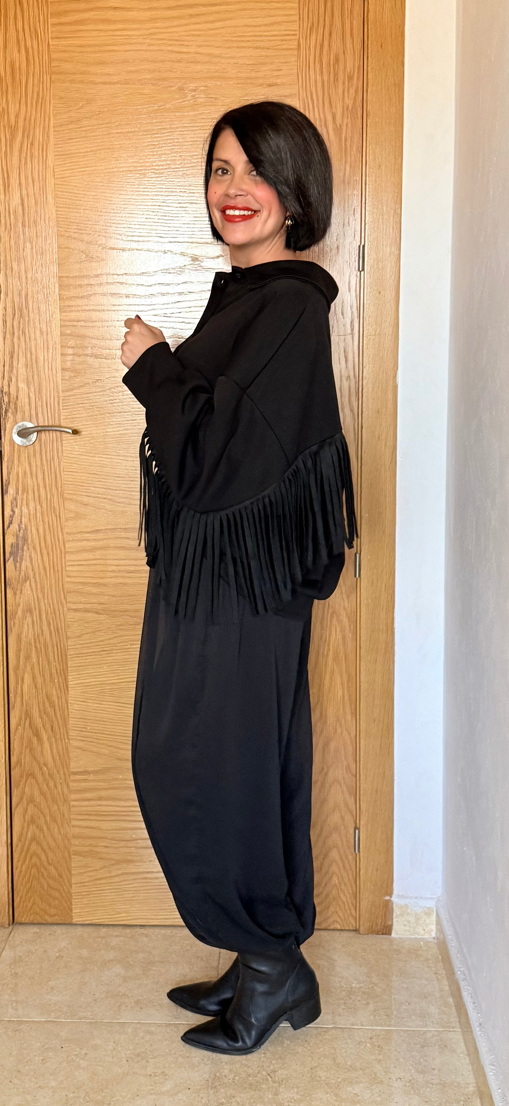 Camisa flecos negra, con un tacto muy suave, amplia y cómoda.