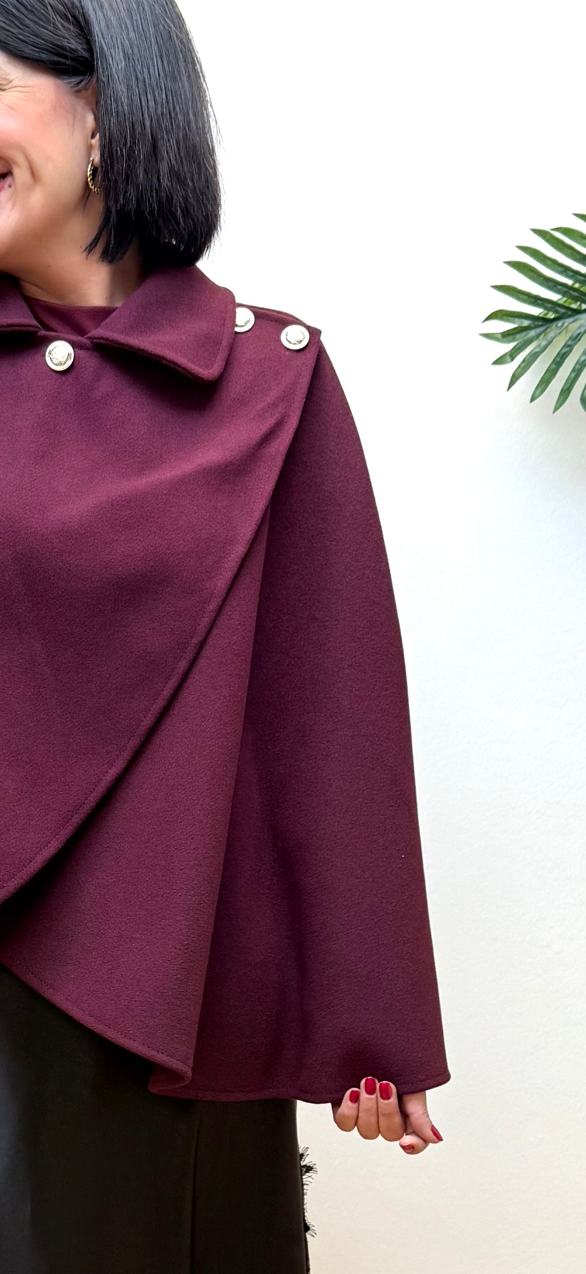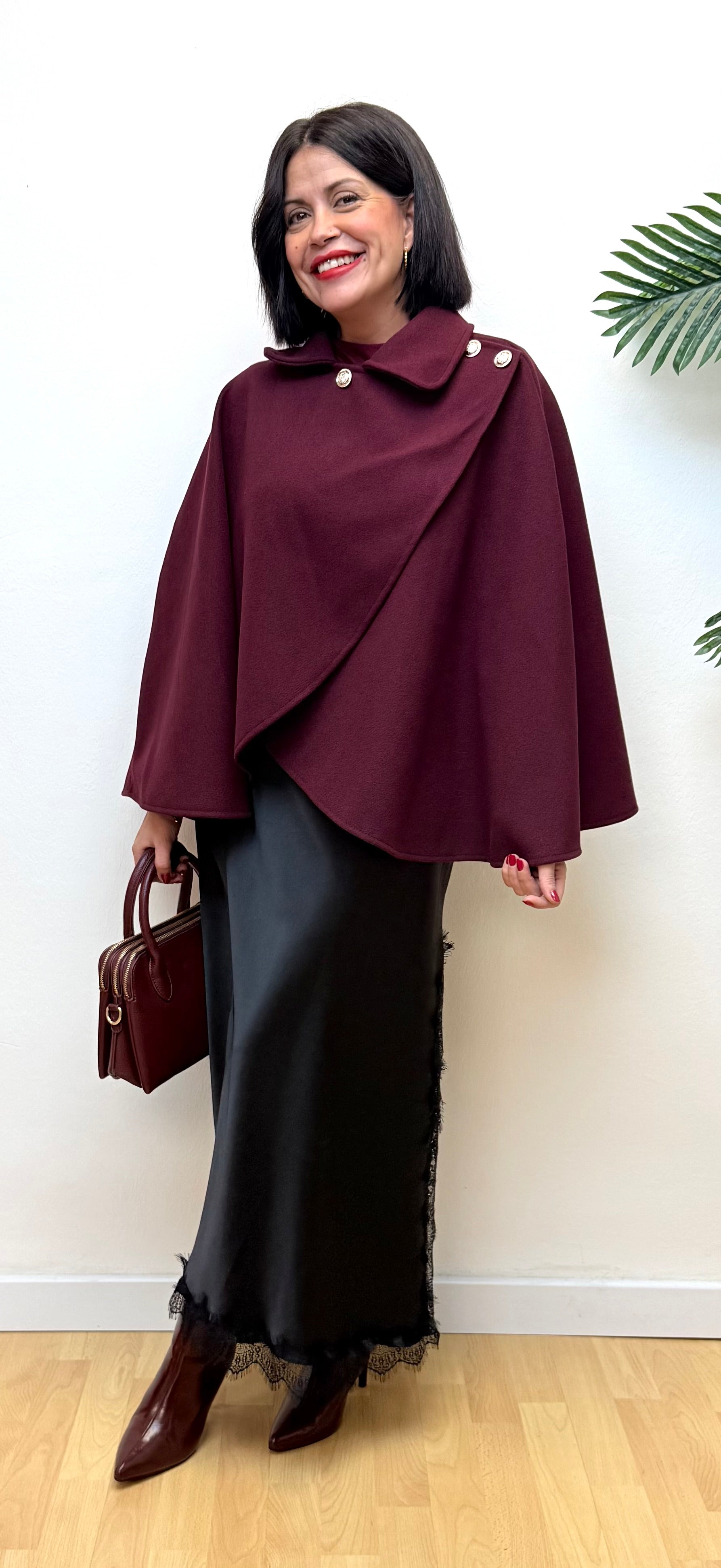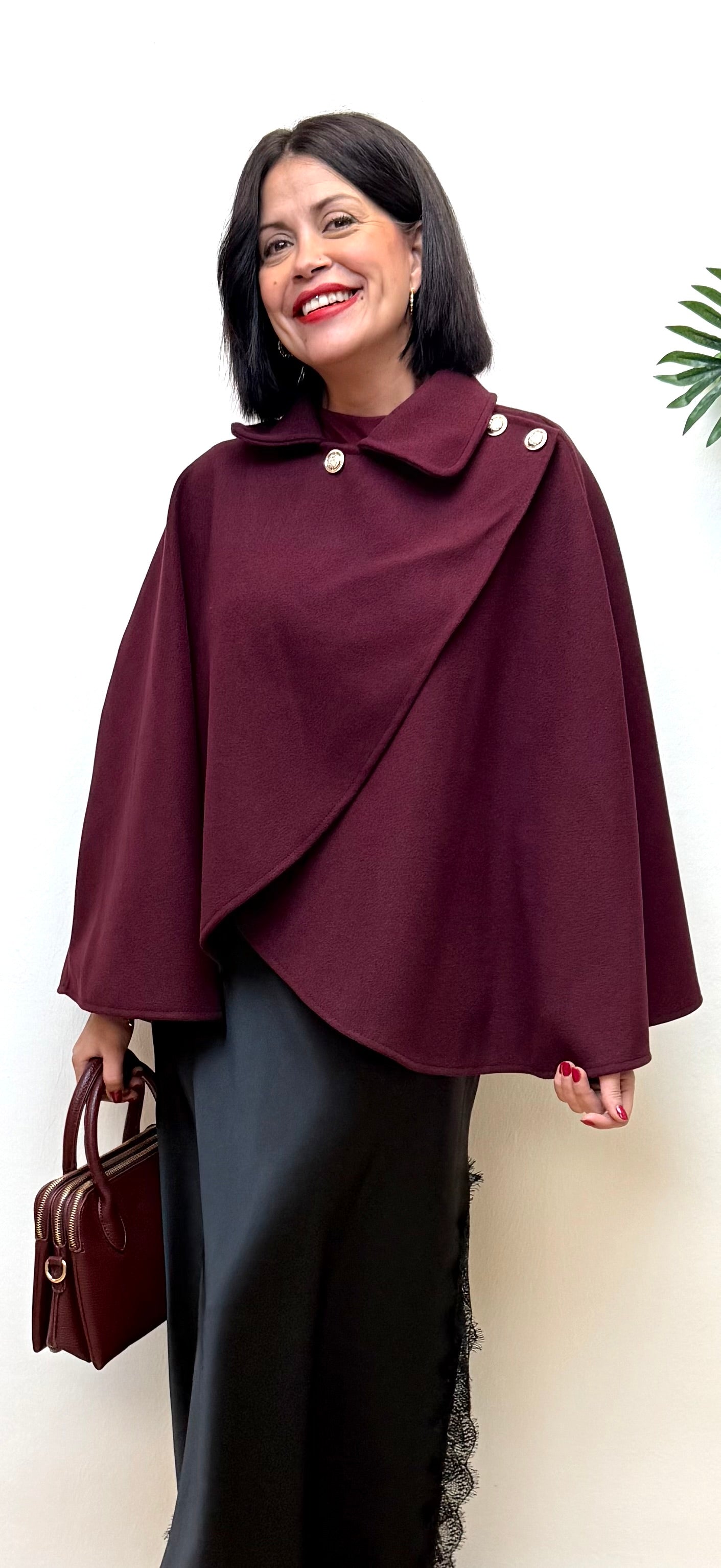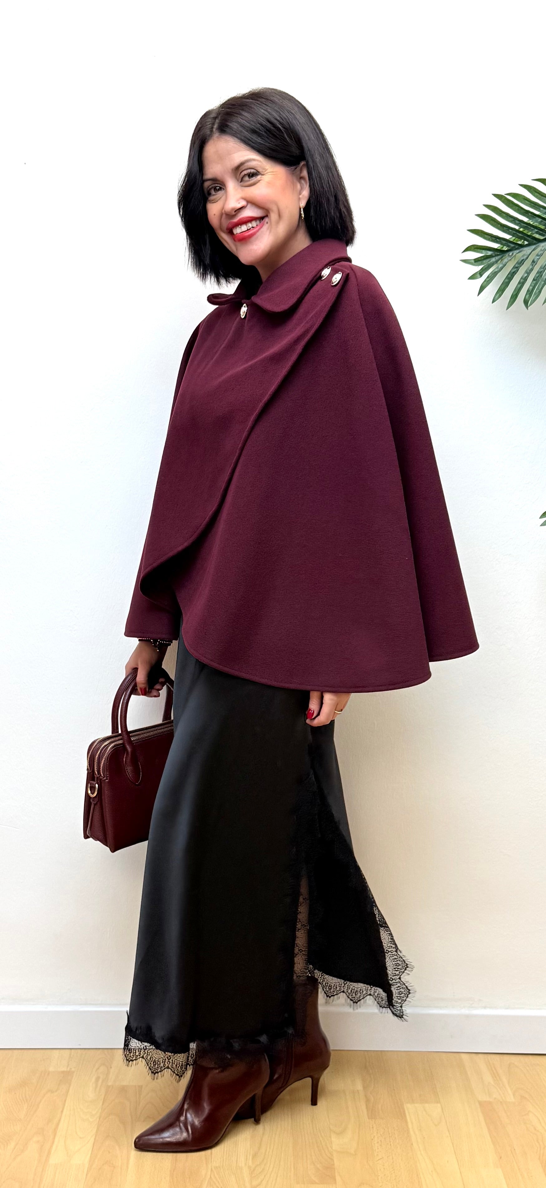 Capa Sabrina Burdeos un clásico de todos los tiempos, verástil, definen estilo y elegancia, abrigada y además no entiende de tallas.