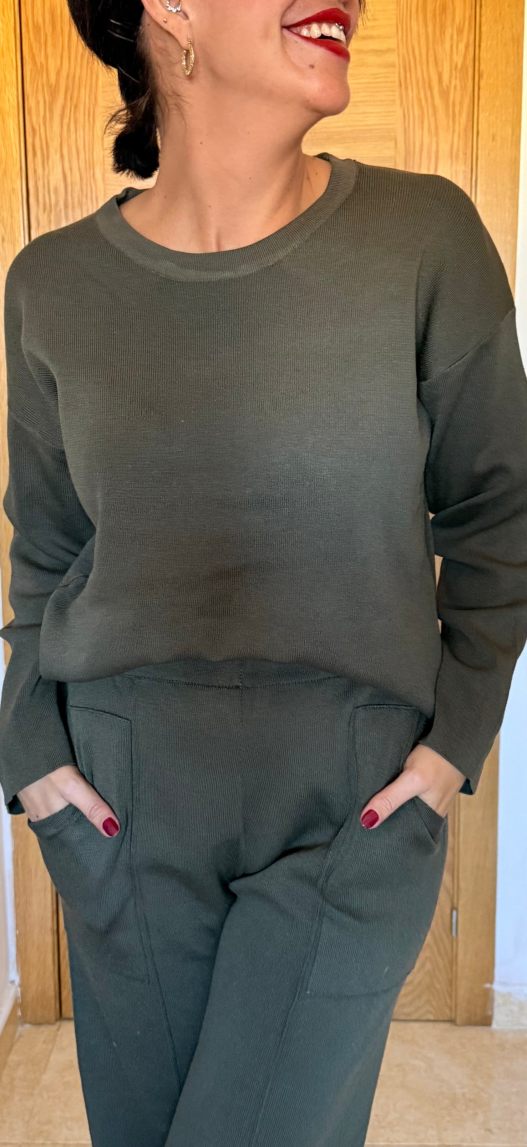 Conjunto crudo Toscana, conjunto de 2 piezas, la parte de arriba tiene el corte perfecto por ser recta y larga, además de amplia, y vienen en 2 tallas, comodidad, calidez y versatilidad.