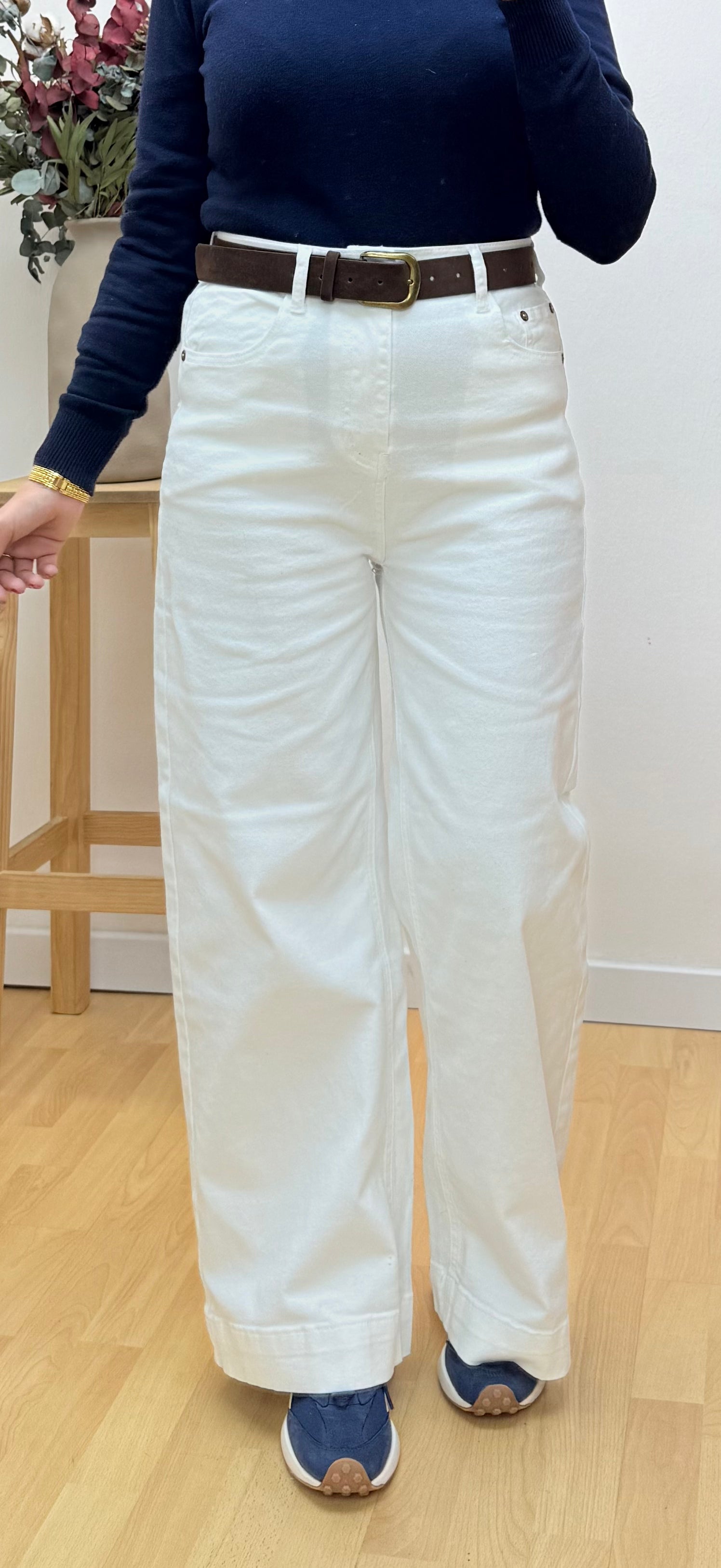 Un jeans de corte recto con tejido grueso, estiliza tu figura ya que es alto de cintura con cinturón incluido de antelina.