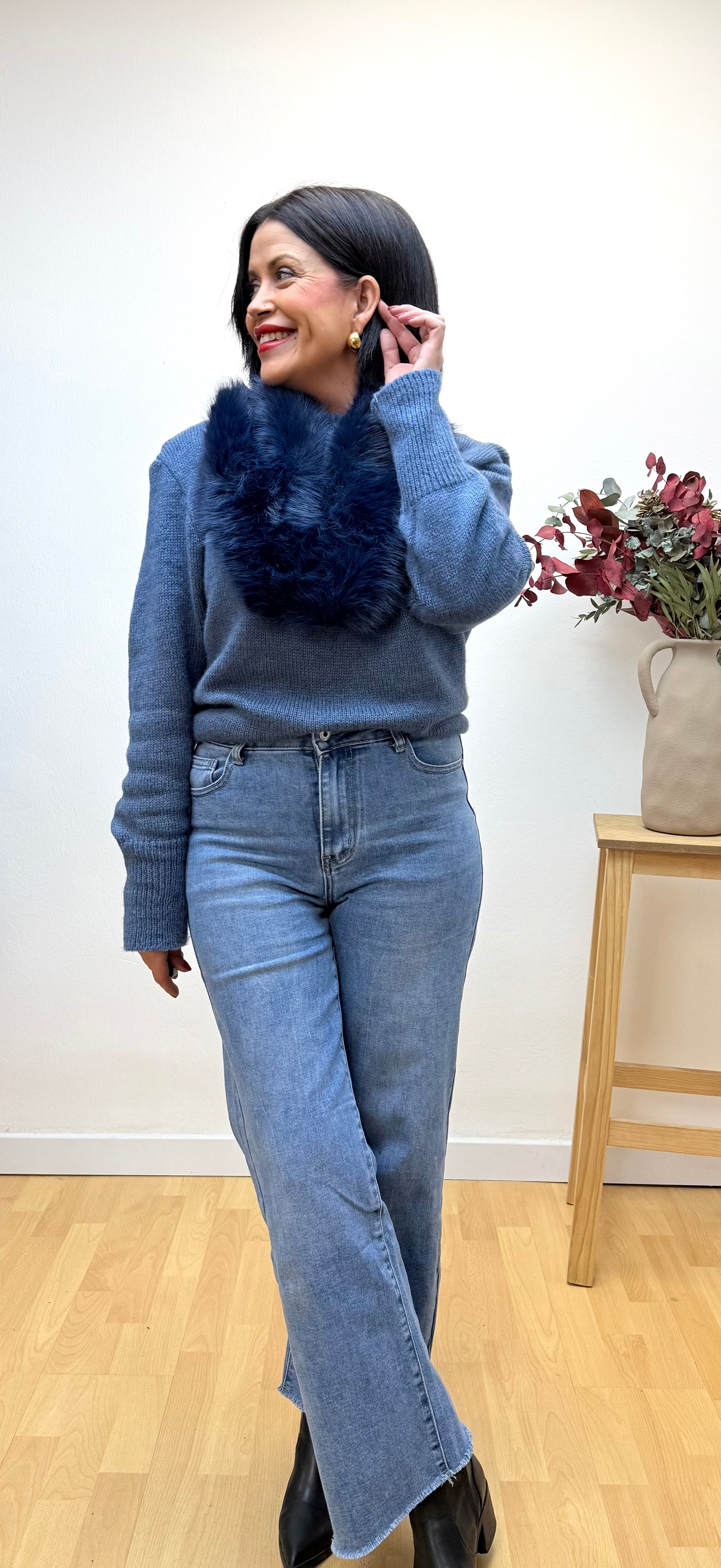 Jersey Hombreras azul vaquero , muy suave, cálido.