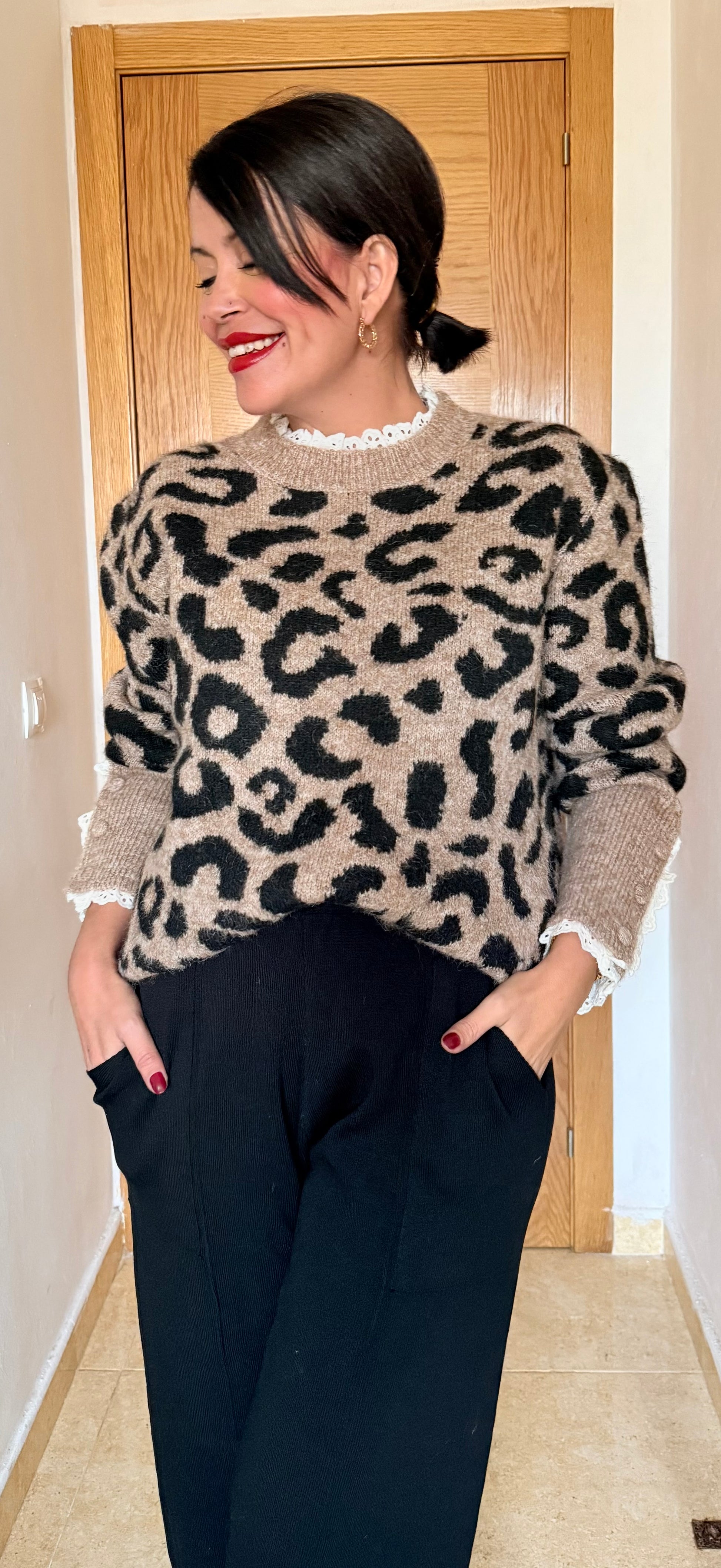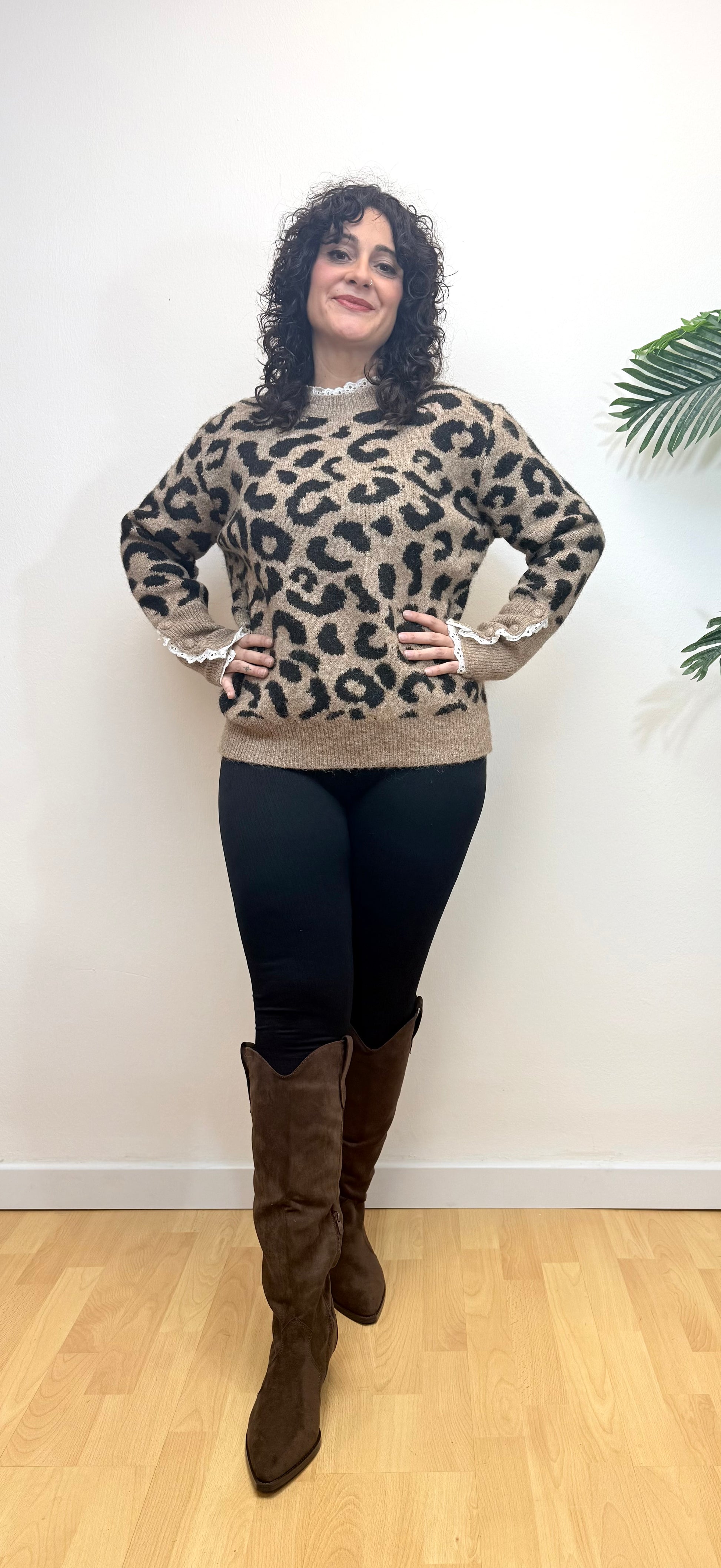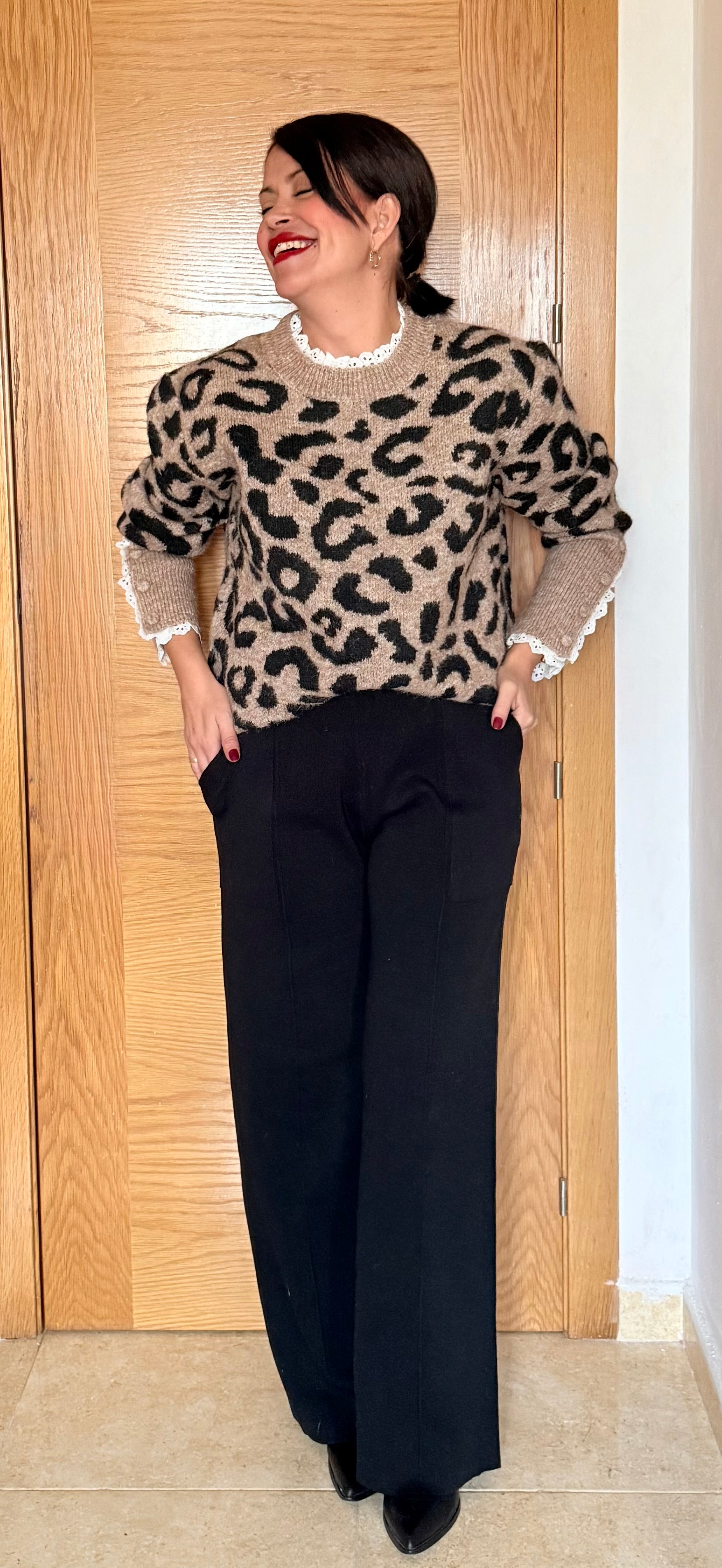 Jersey print puntilla, es un jersey grueso especial para los días más fríos de invierno, con un tacto extra suave, no pica, con unos detalle en la zona del cuello y mangas de infarto.