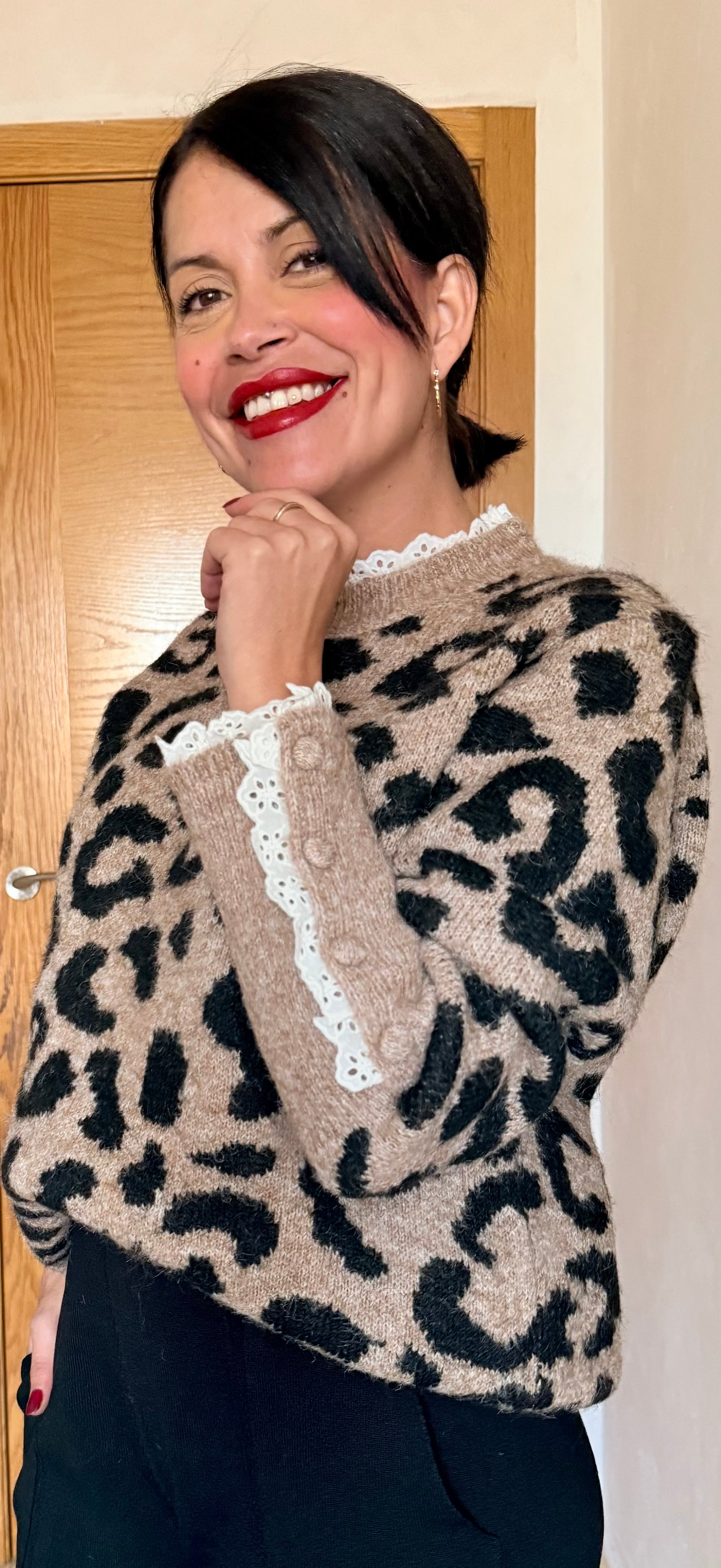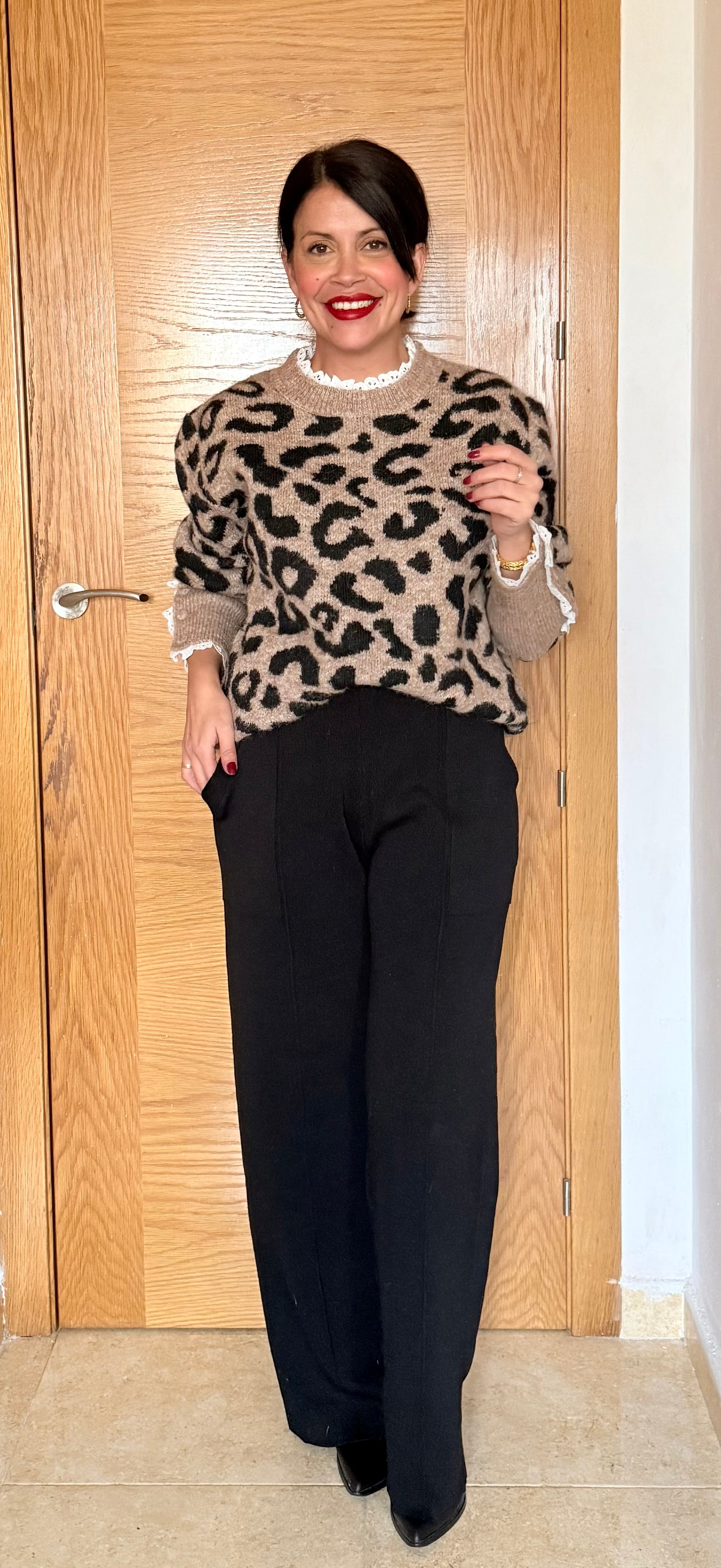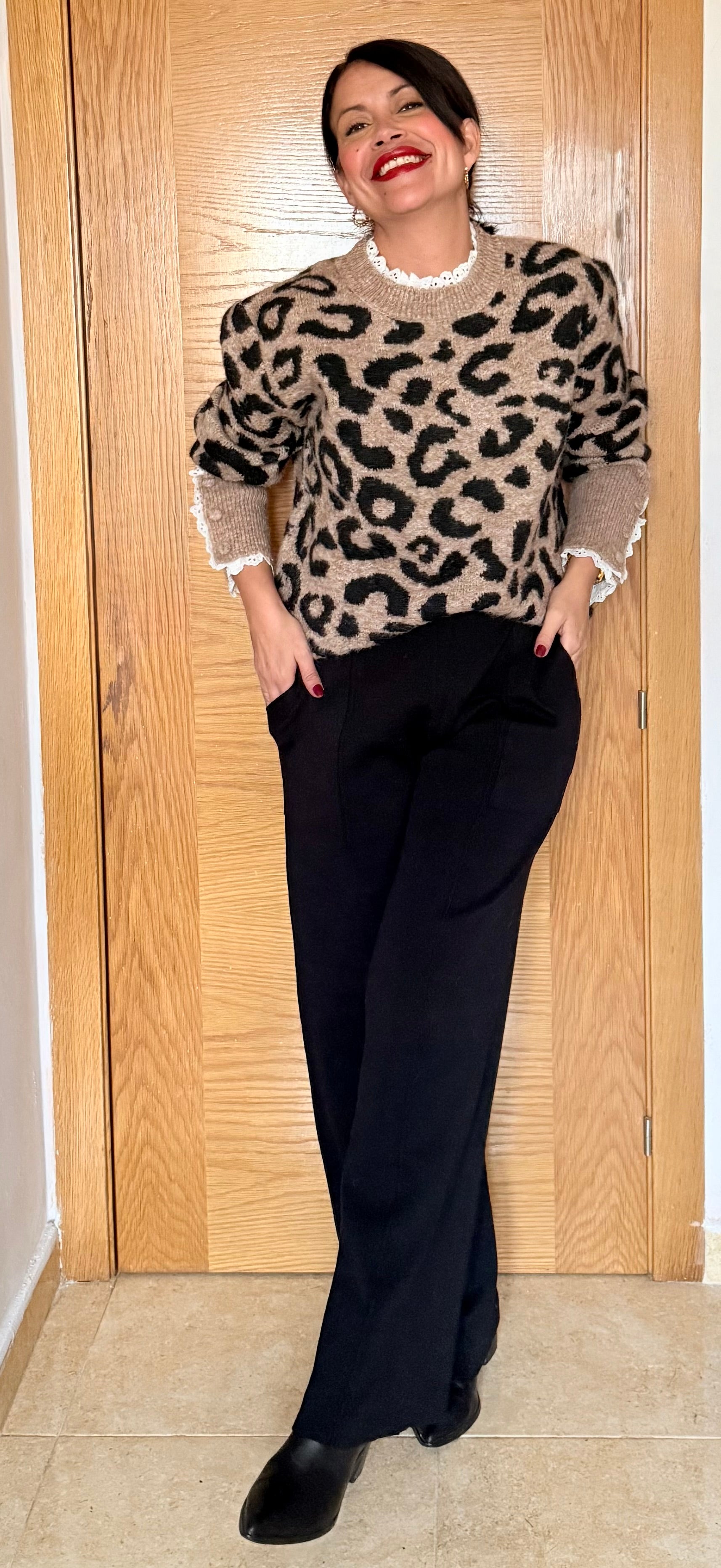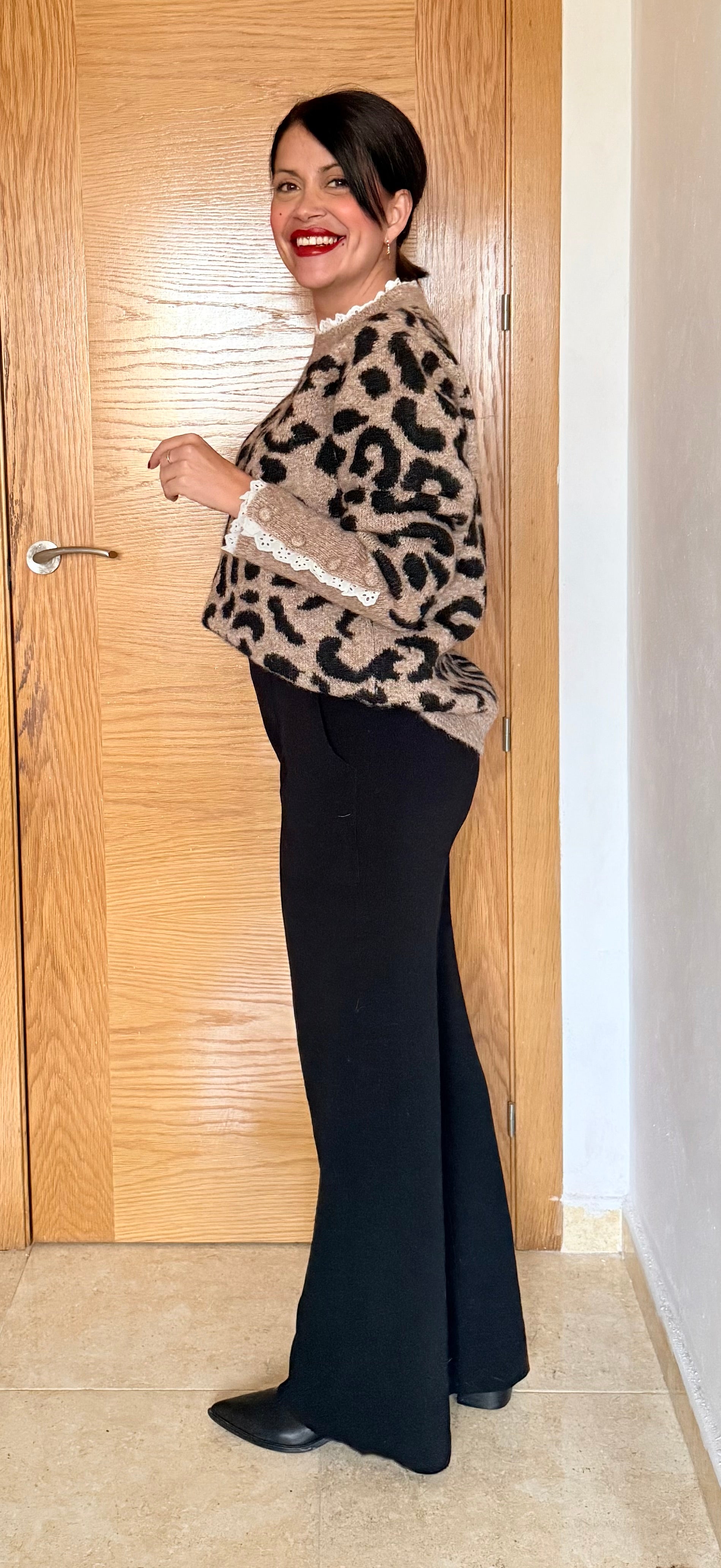 Jersey print puntilla, es un jersey grueso especial para los días más fríos de invierno, con un tacto extra suave, no pica, con unos detalle en la zona del cuello y mangas de infarto.