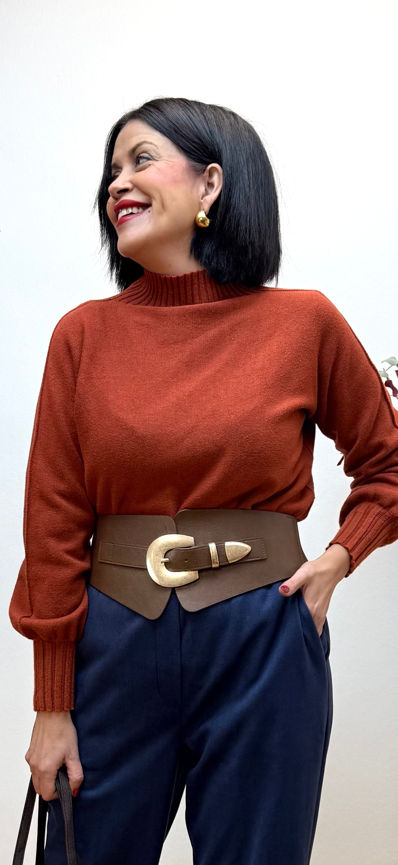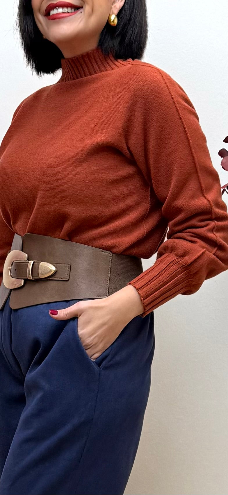 Jersey teja Marta, con cuello medio tiene un tacto muy agradable, canalé en la zona del cuello y puños.