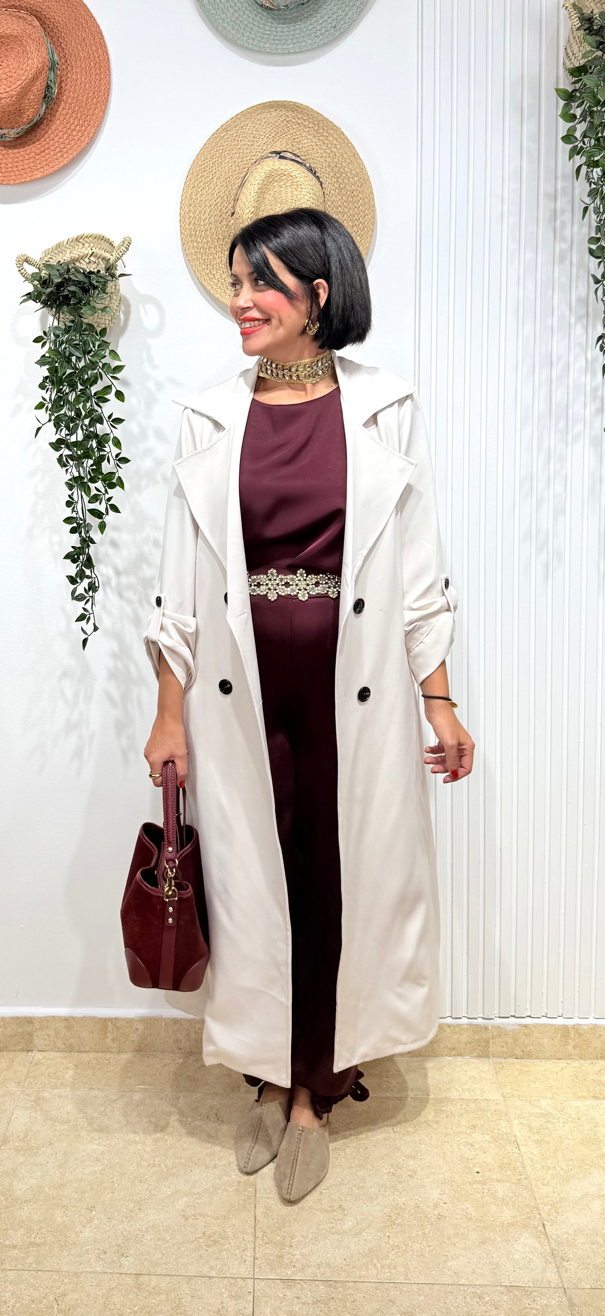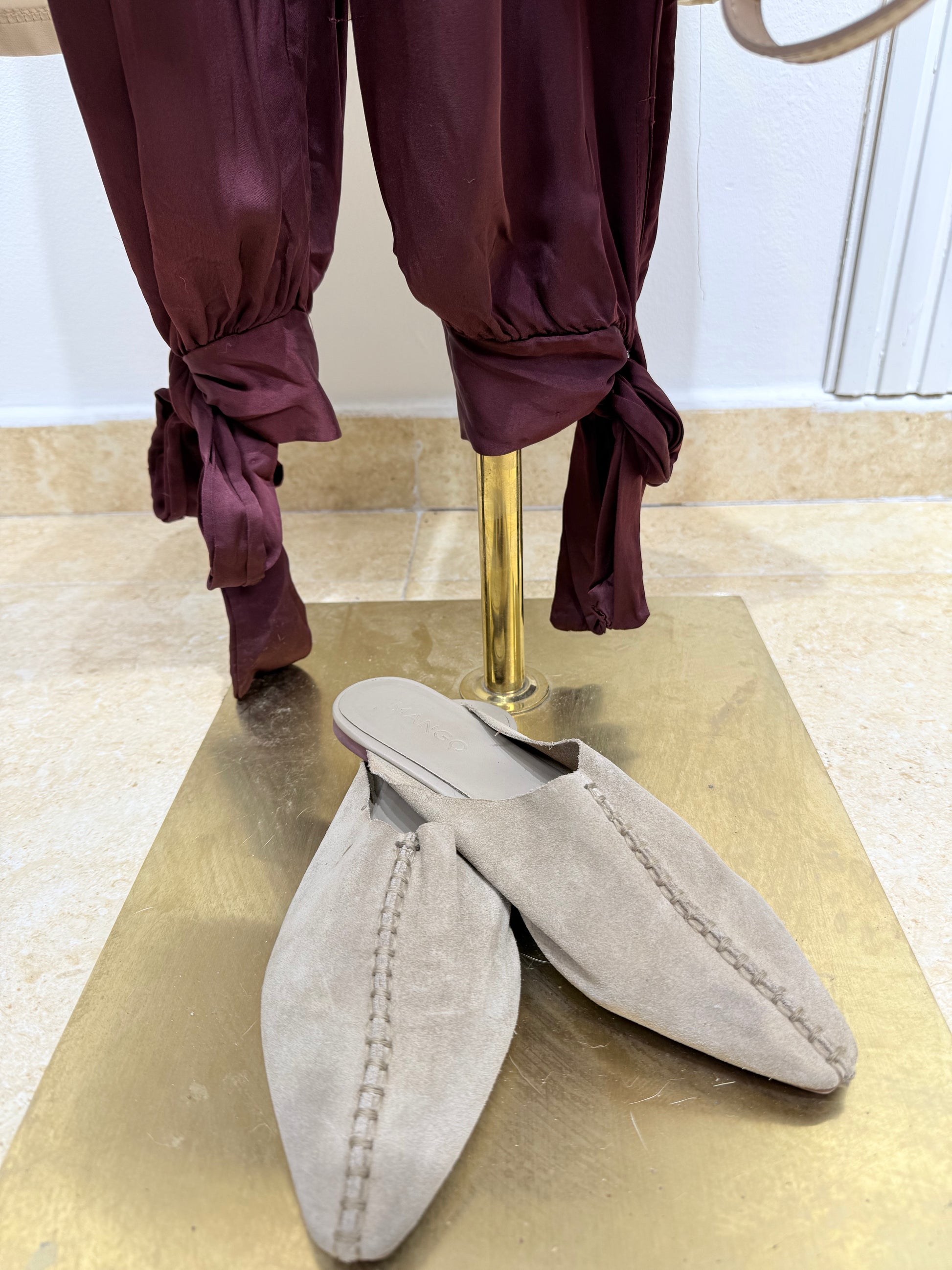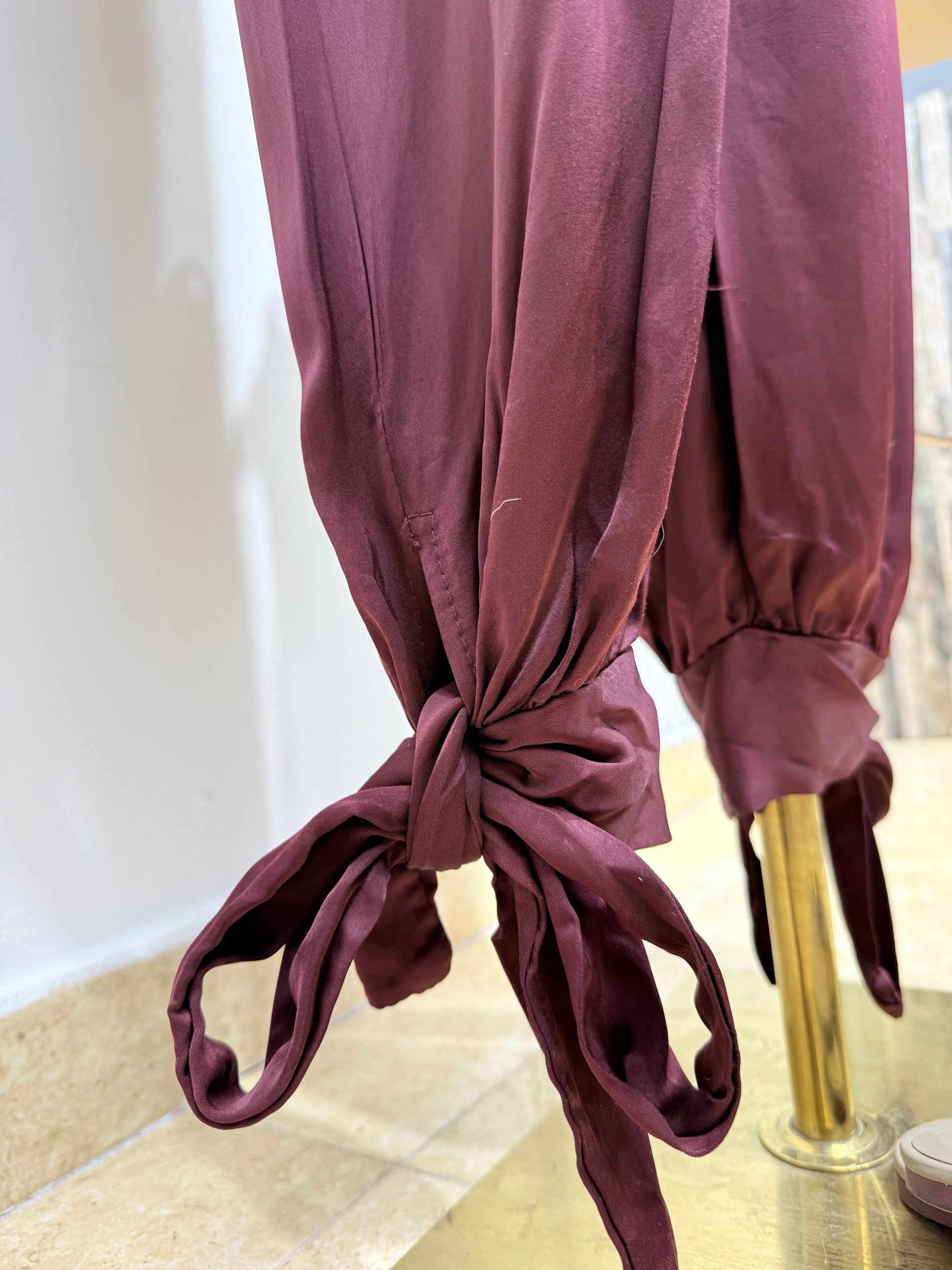 Pantalón Aladin burdeos satinado lazo, como goma en la cintura