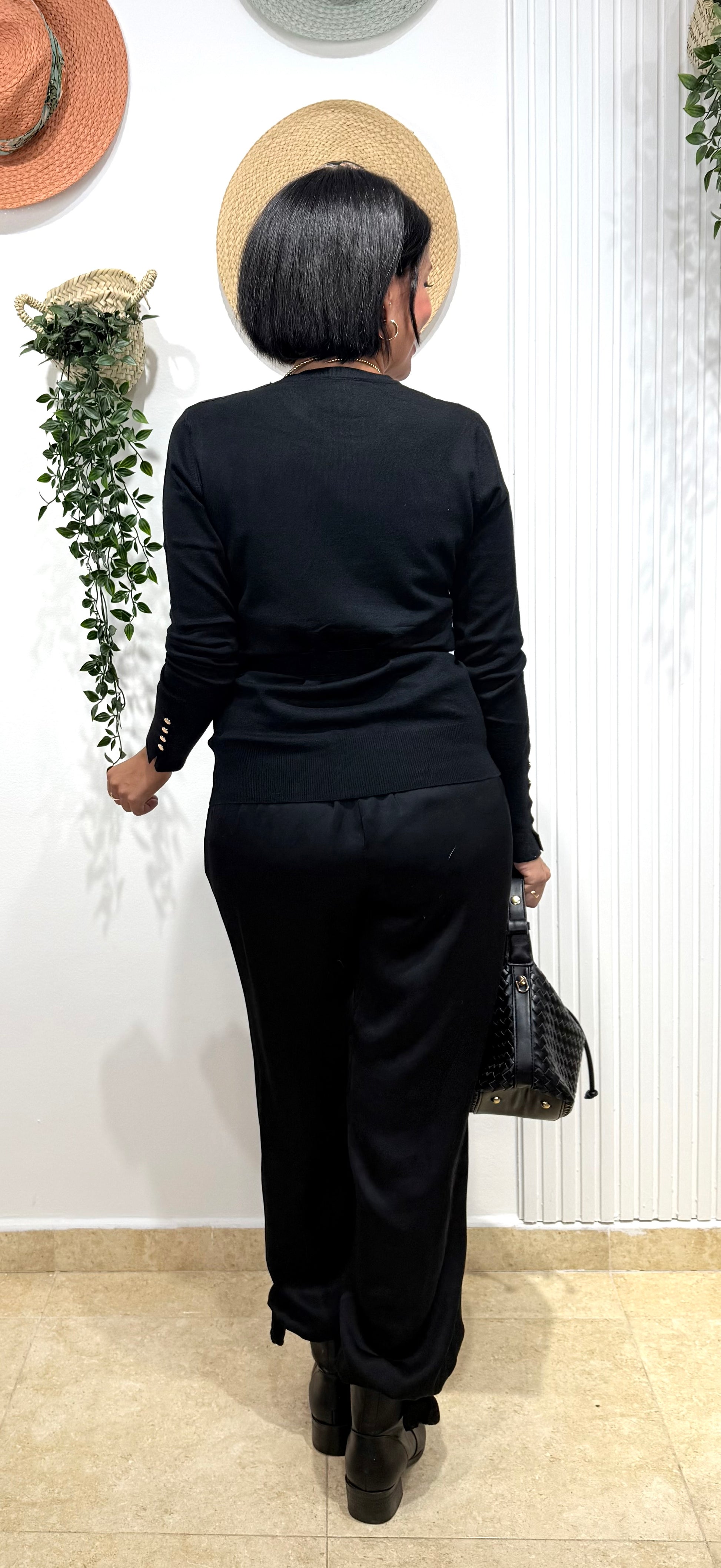 Pantalón Aladin negro satinado lazo, como goma en la cintura