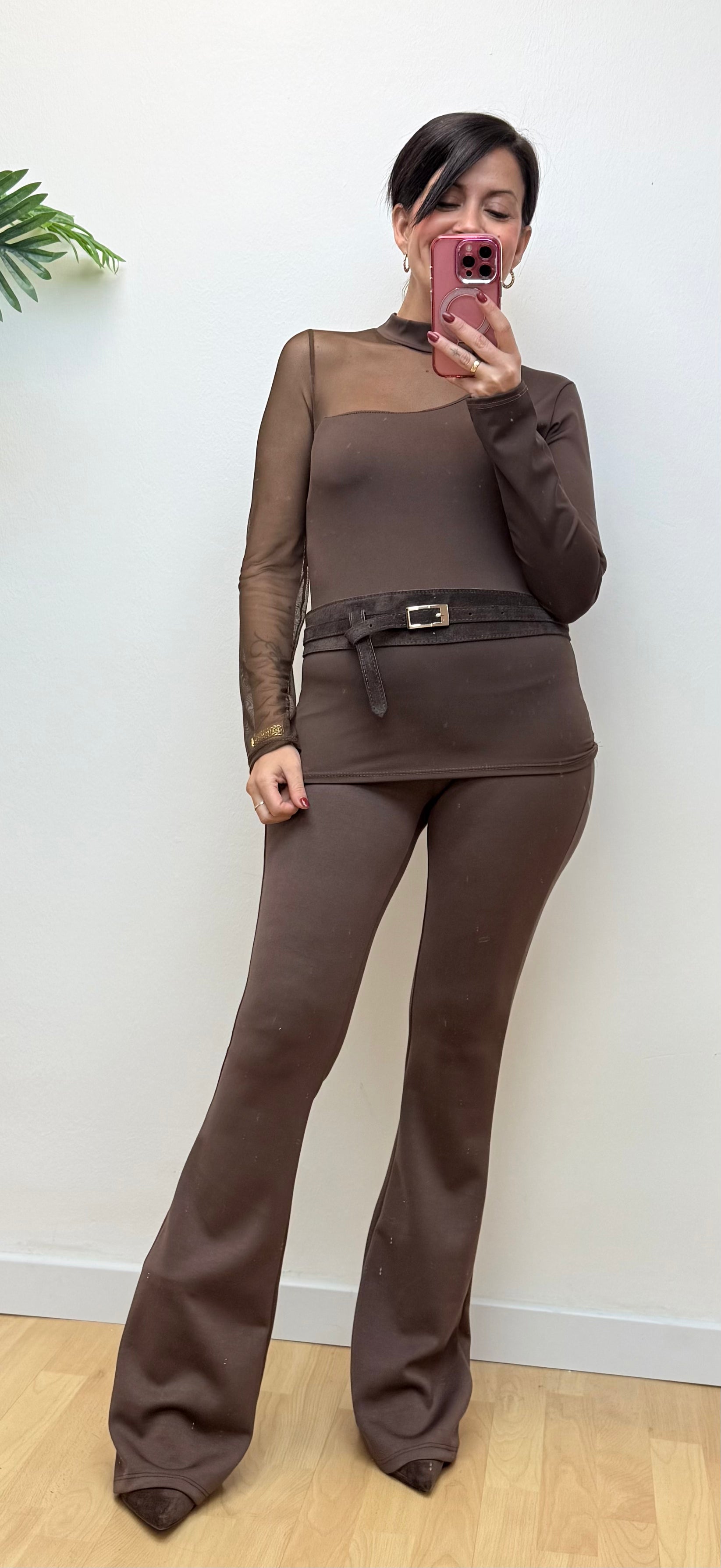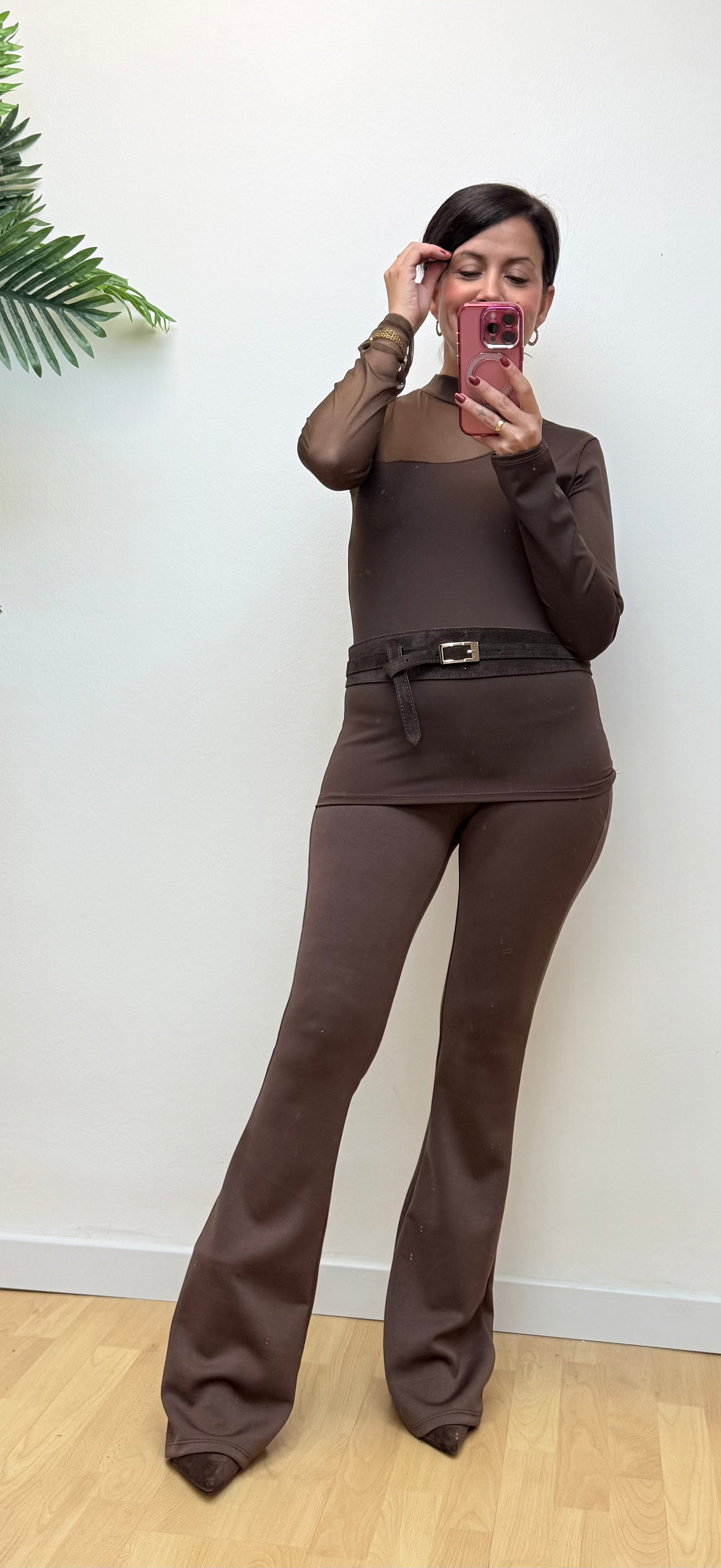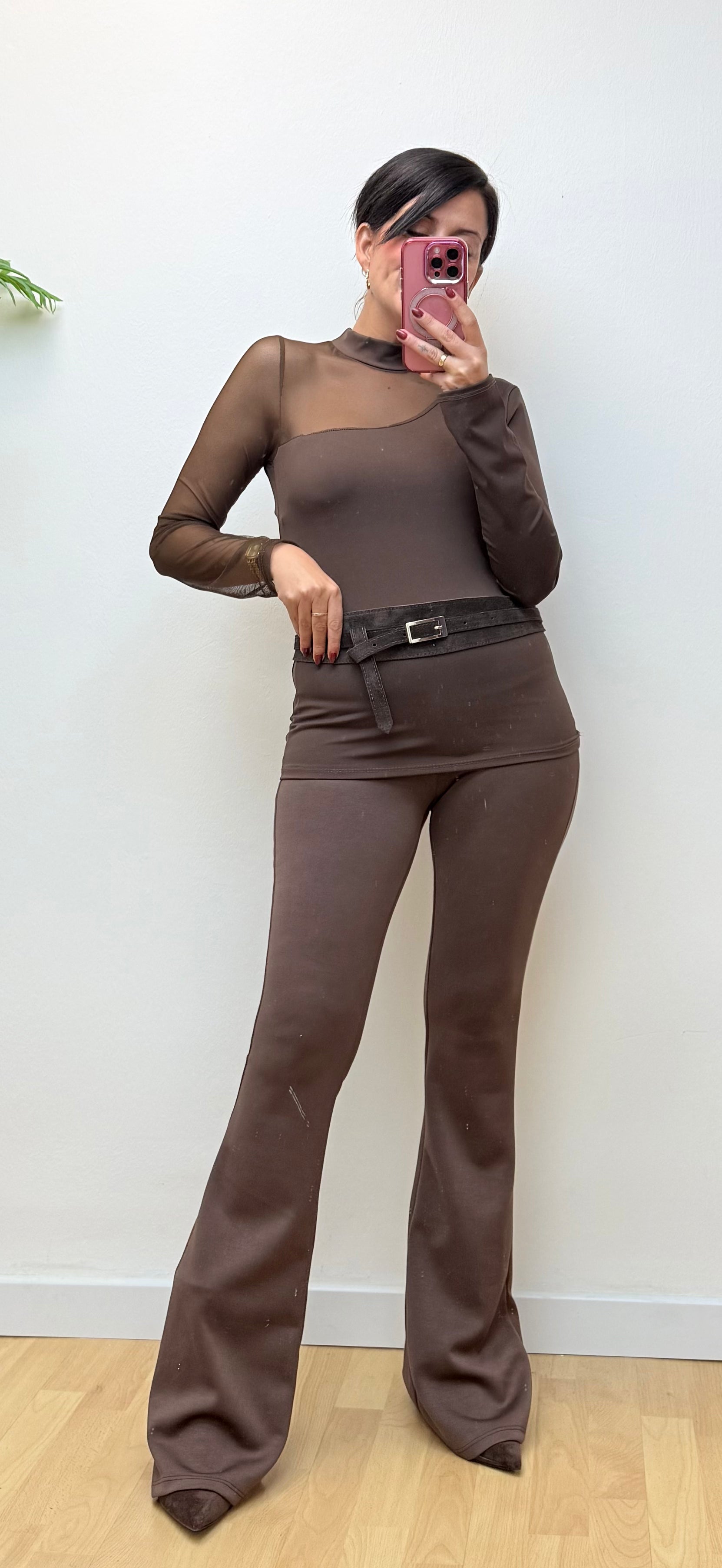 Pantalón campana chocolate, goma en la cintura, elásticos, suavidad, y si eres de comodidad estos son tus pantalones perfectos.