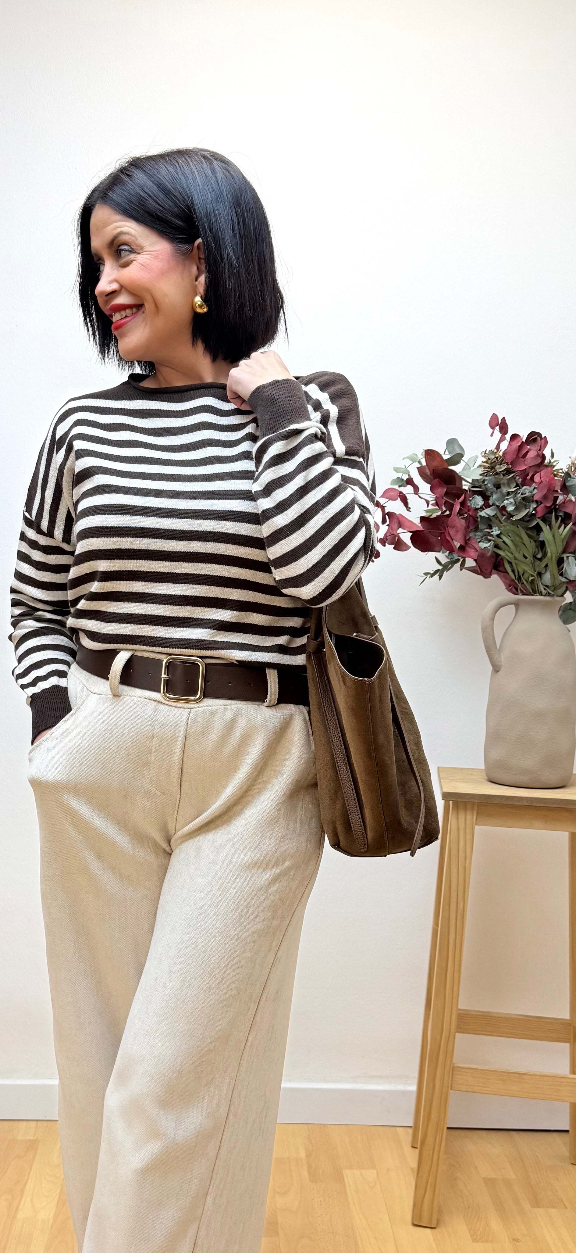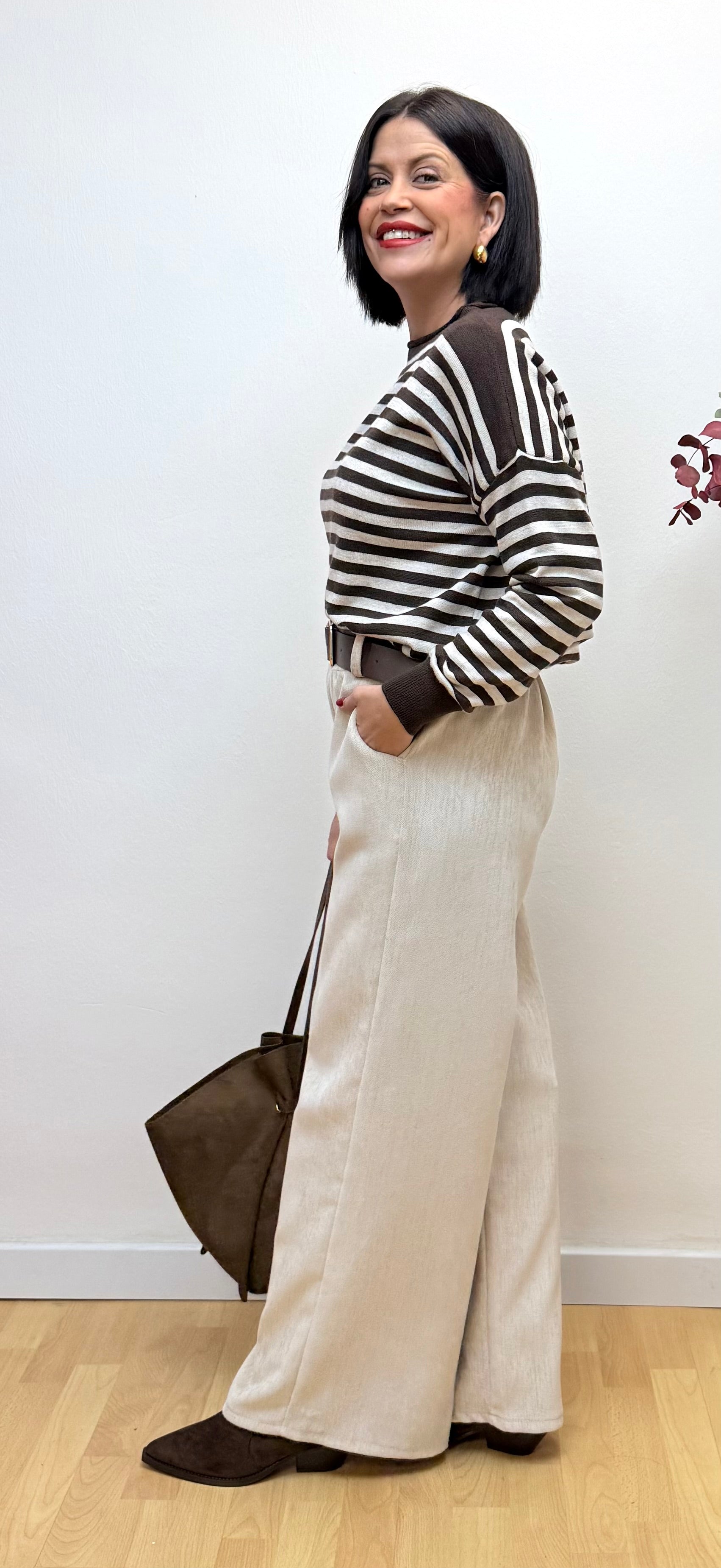 Pantalón Michaella crudo, con corte recto, tejido grueso y calentito.
