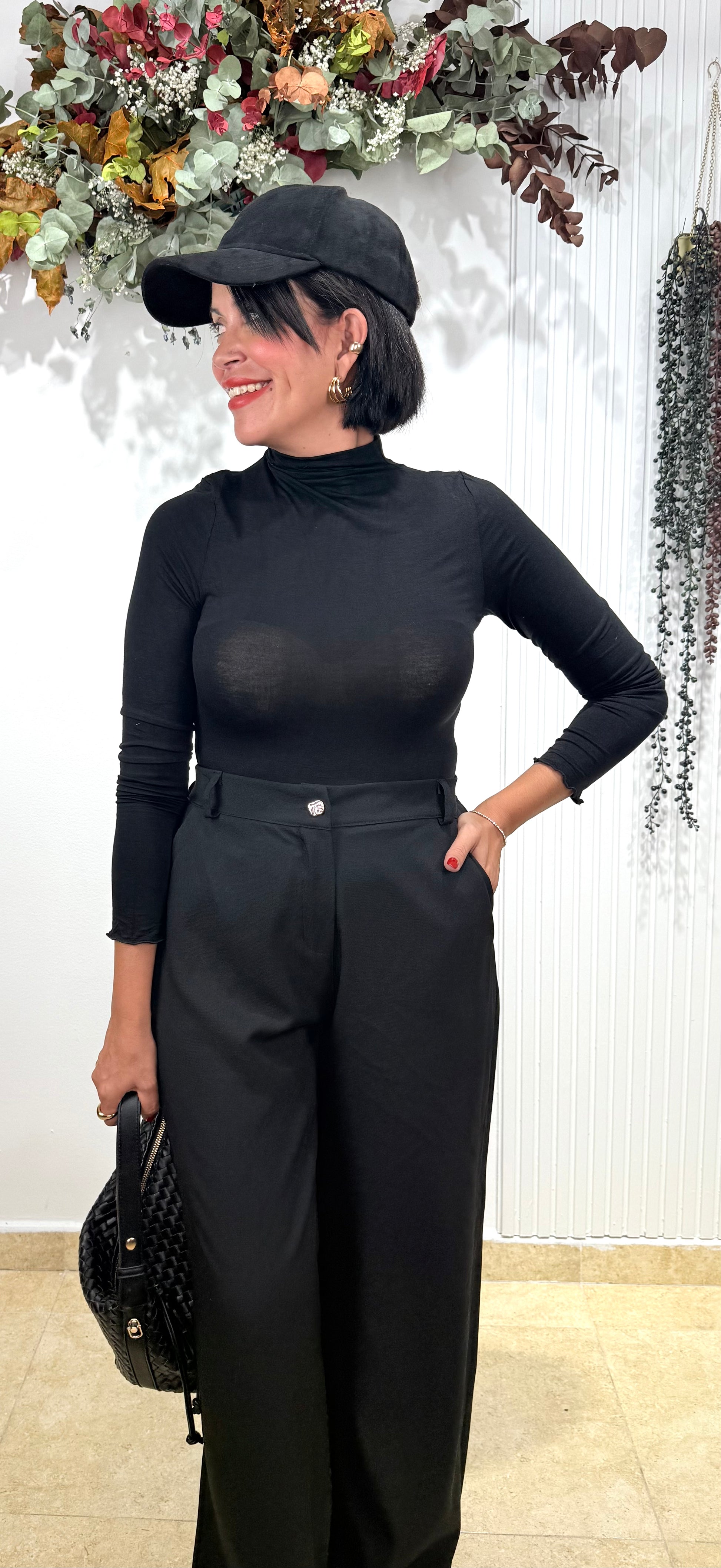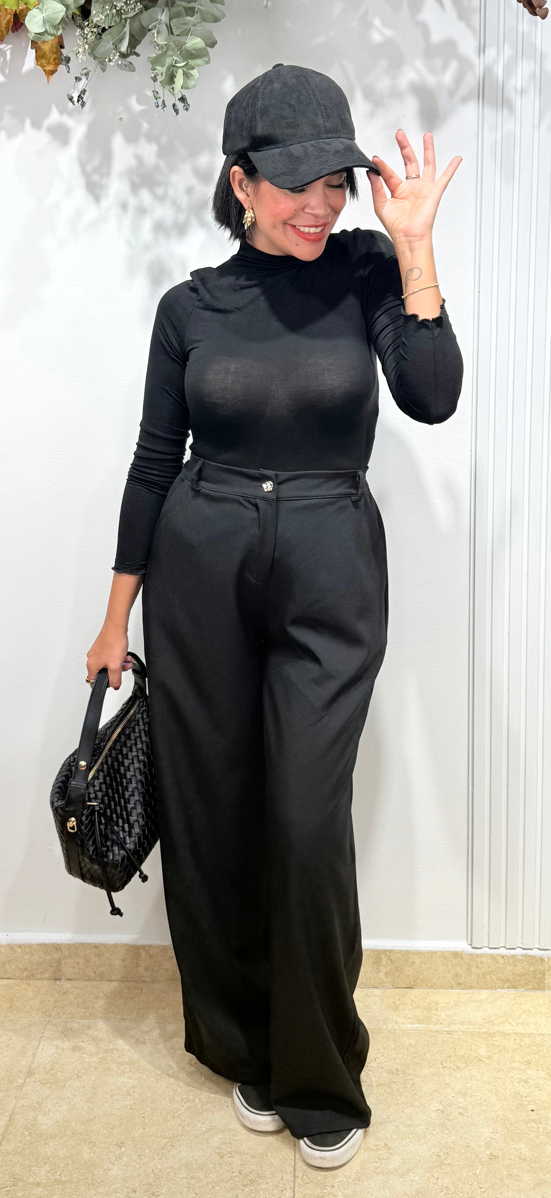 Pantalón pañuelo negro, con pañuelo y detalle de botón