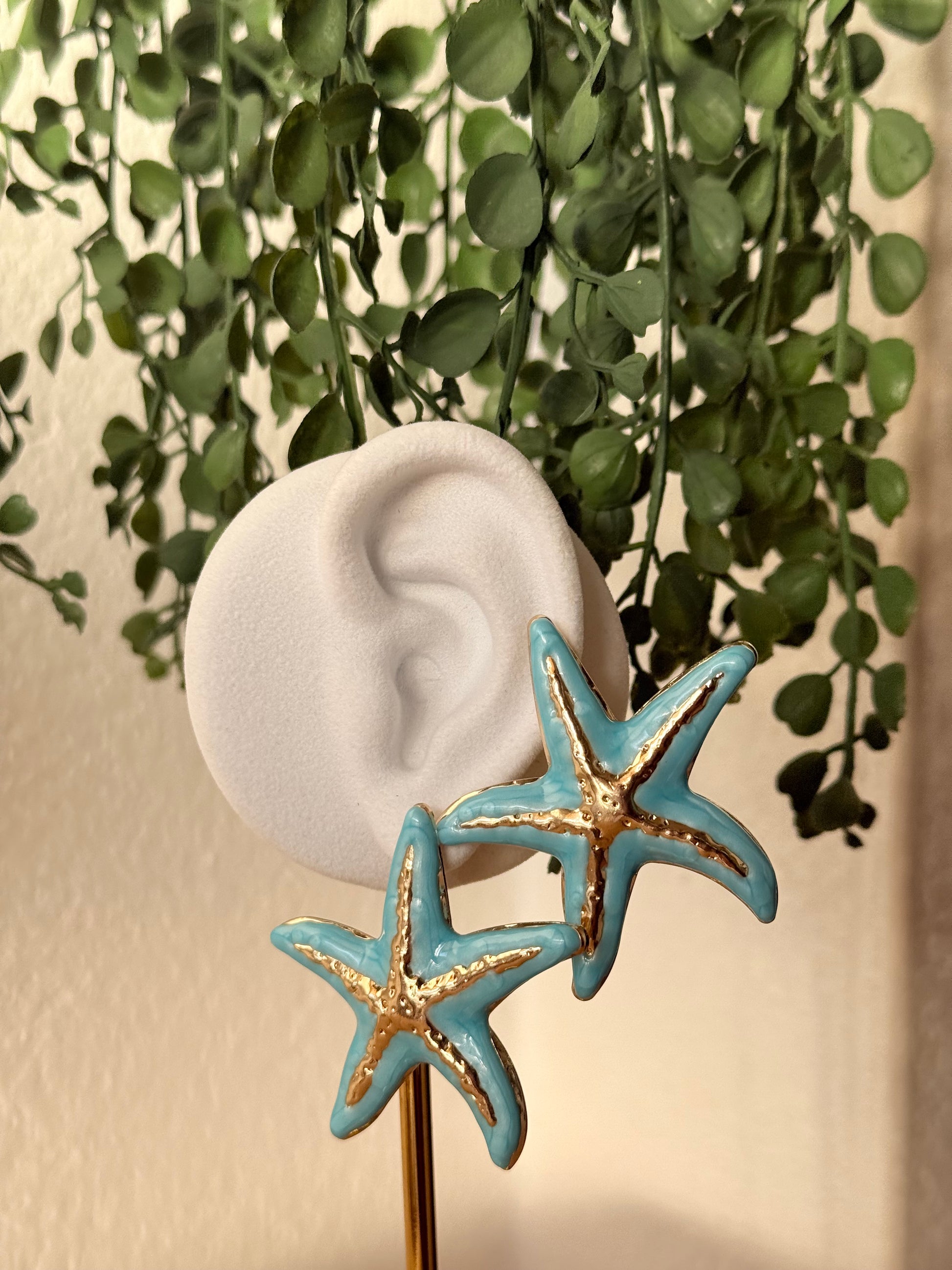 Pendientes acero estrella azul