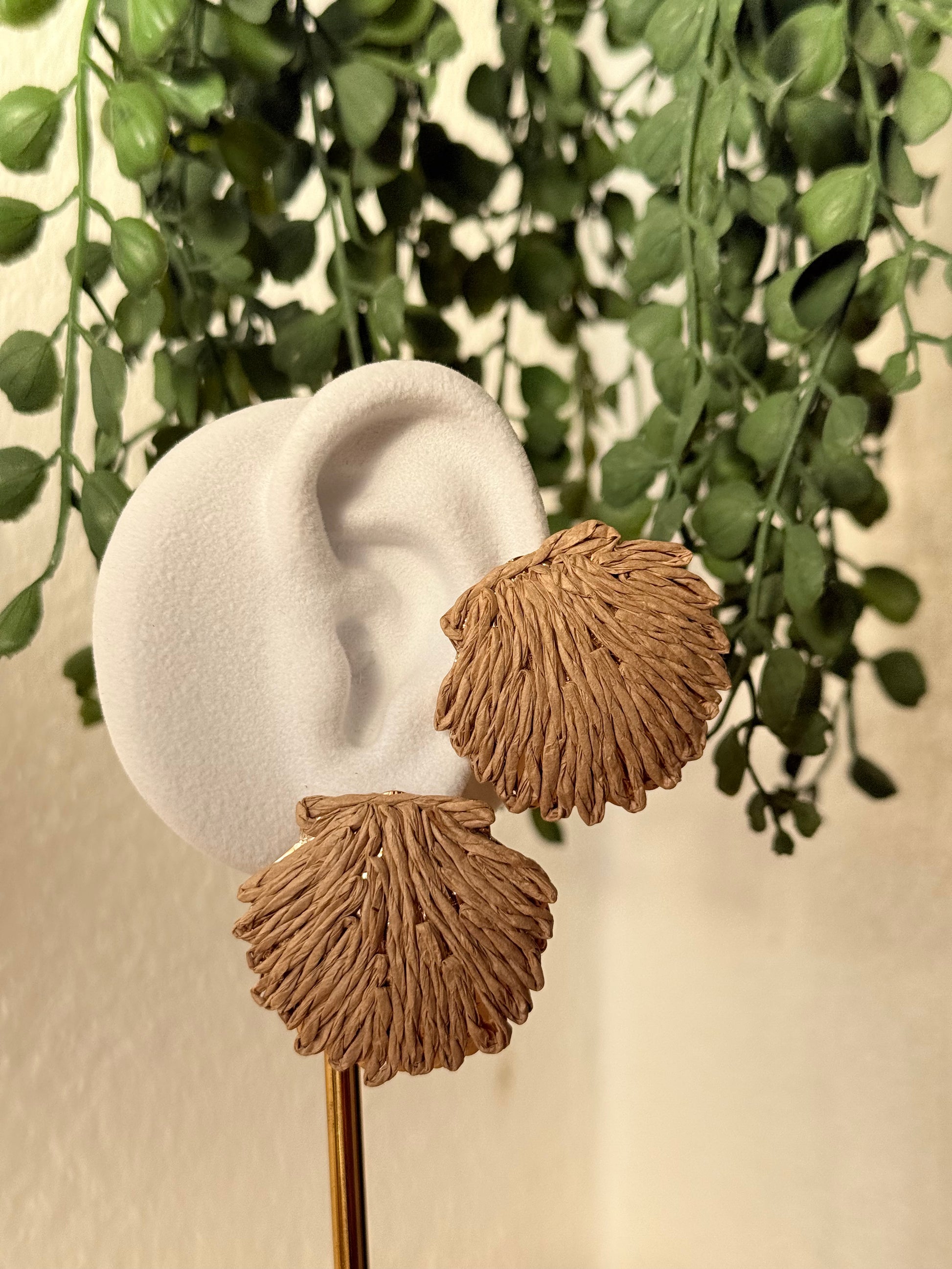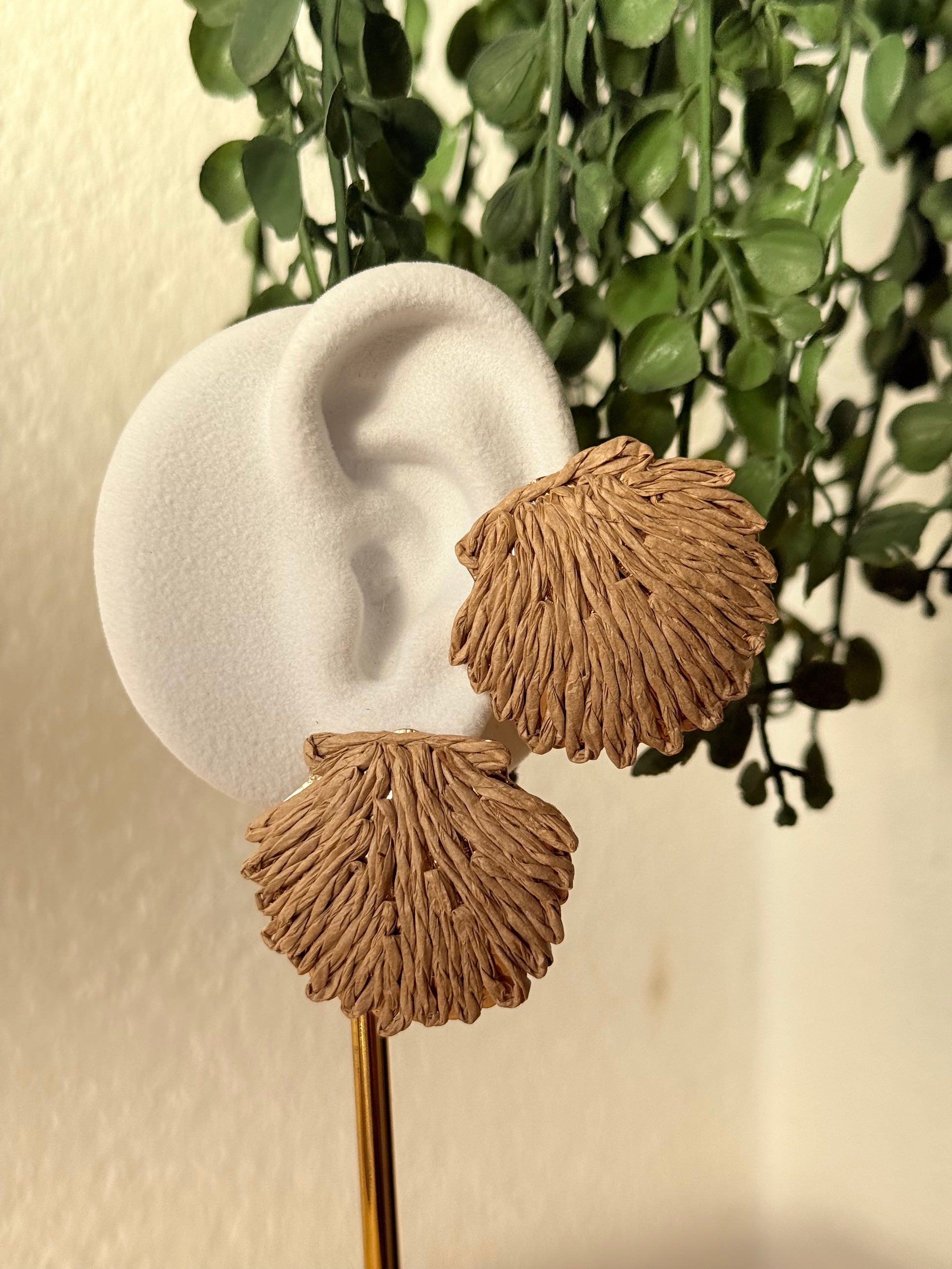 Pendientes rafia y acero concha camel