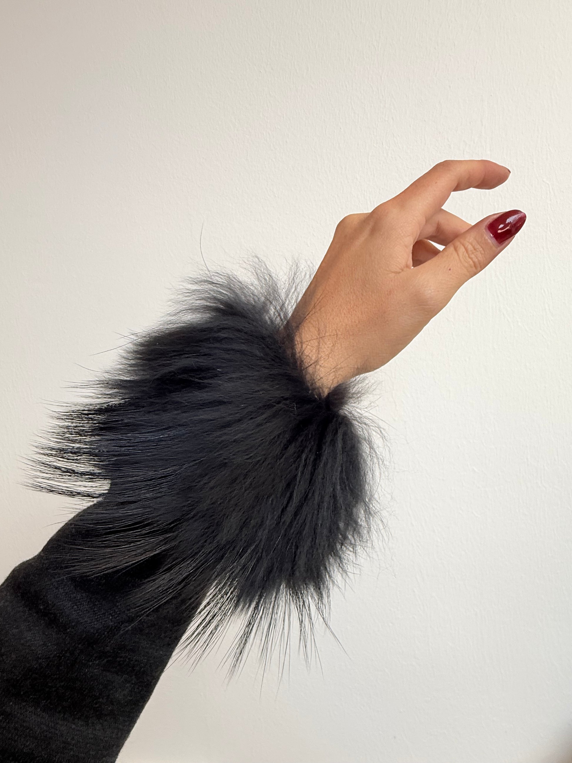 Puños de pelo negro, perfectos para acompañar tus vestidos, camisas y o tu abrigo preferido.