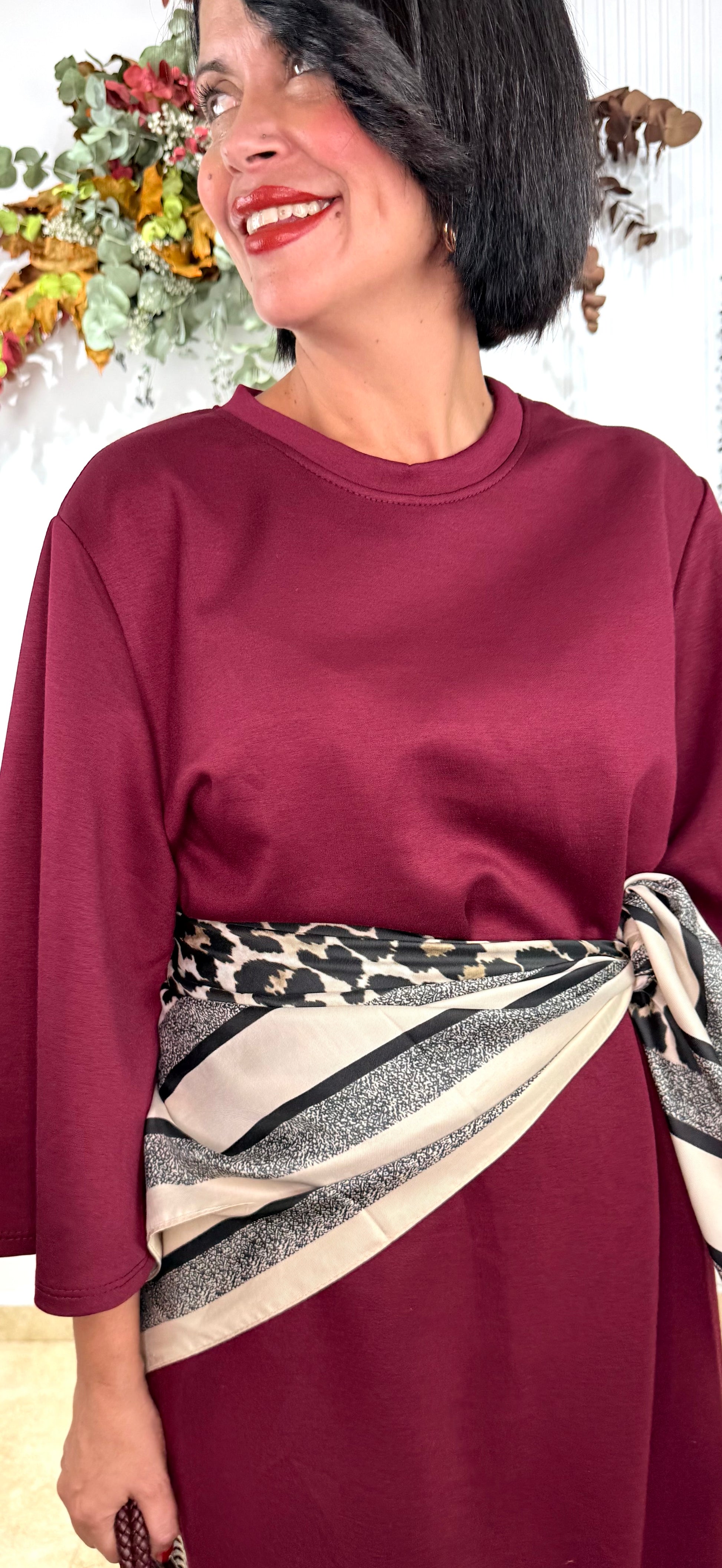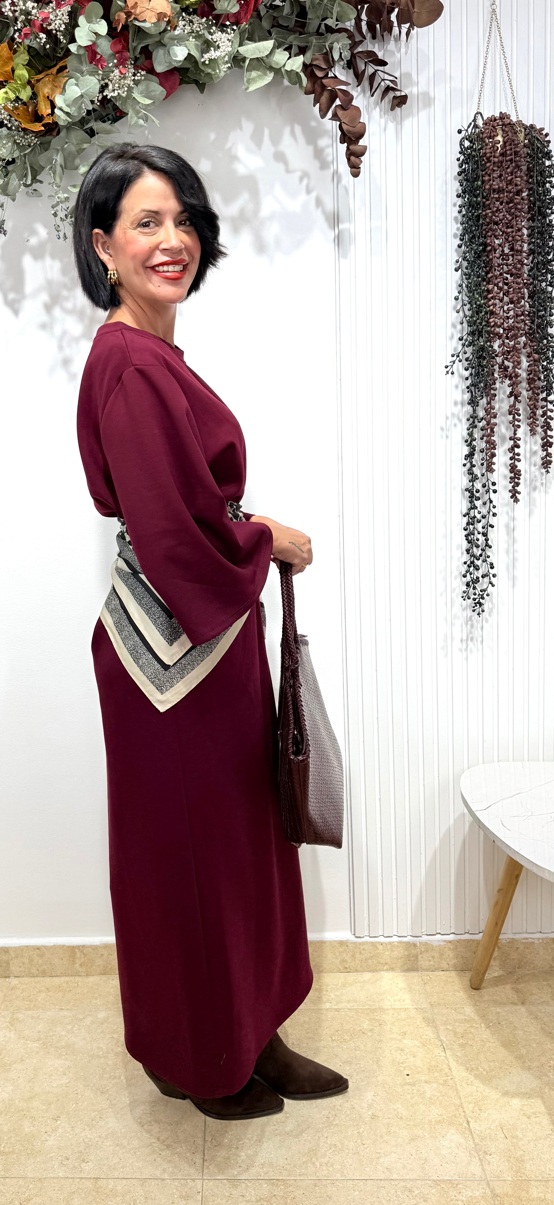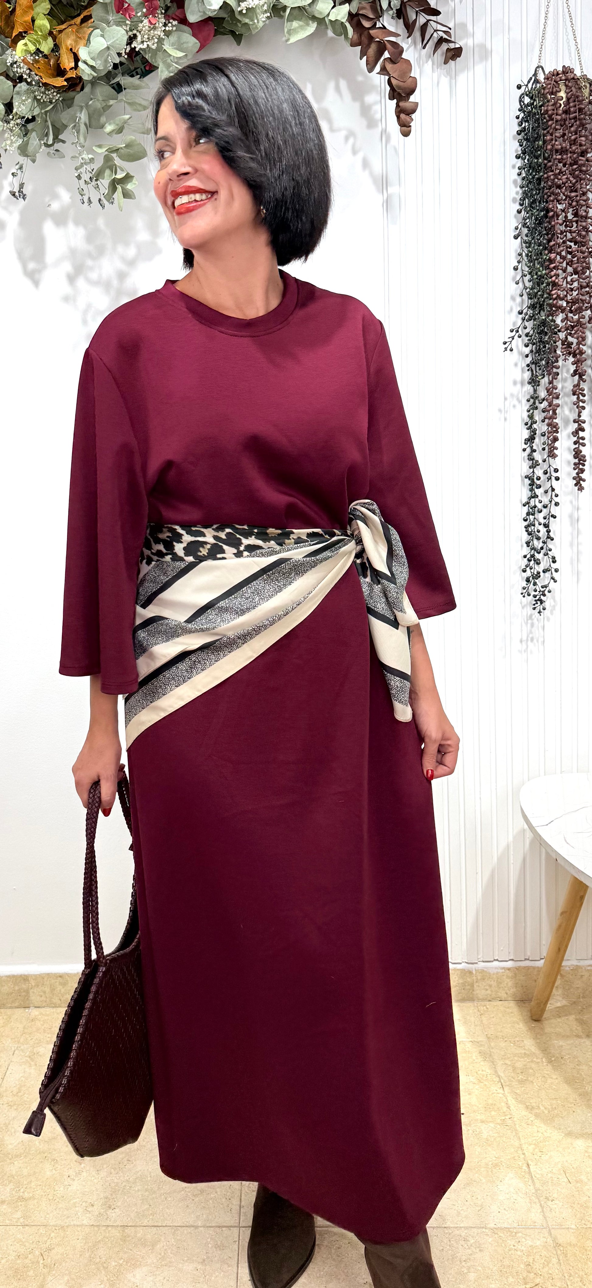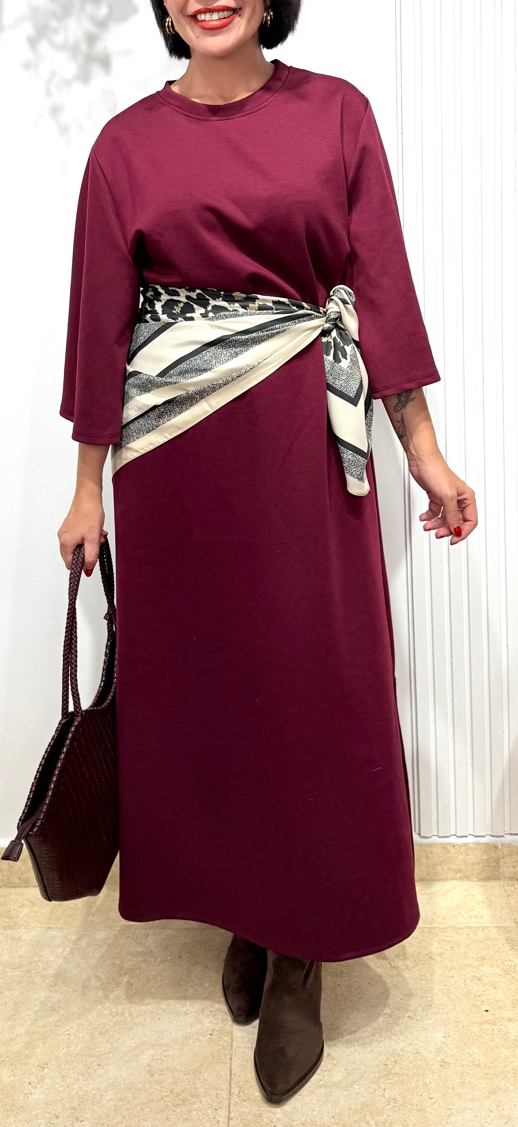 Vestido largo cinturón burdeos , es amplio, tiene un tacto suave, y viene con cinturón incluido.